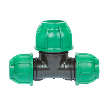 The KPE T-connector can be used to branch off laterally from a Kpe pipe. The branching allows connection to a larger diameter Kpe pipe.
