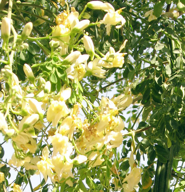 Moringa oleifera - Zázračný strom, Strom života pochádza pôvodne od úpätia Himaláje, ale dnes už ho pestujú vo veľkom množstve pre značné liečivé účinky. V podstate je to najužitočnejší strom trópov. Na niektorých miestach ho nazývajú zázračným stromom. Listy, plody, kvety ale ja korene sú jedlé a liečivé. Obsah bielkoviny v liste je cca. 10%. Listy sú 2-3 krídlovité, kvety biele alebo červené, plody sú pomerne dlhé plné semien veľkosti orieškov. Zo semein sa lisuje Behen olej. Koreň má silnú vôňu a štipľavú chuť ako chren, preto sa používa aj ako korenina. Z kmeňa vyteká miazga tragan. Rastlina obsahuje 92 životne dôležitých živín a 46 antioxidantov. Je jedným prirodzeným zdrojom železa a vápnika. Minimálna teplota: -6°C. Pestovanie: udržiava sa v mierne úrodnej dobre vodopriepustnej pôde na slnečnom mieste. Charakterizuje ho veľmi rýchly rast, kvitne už približne po roku od klíčenia. Klíčenie cca. po 2 týždňoch