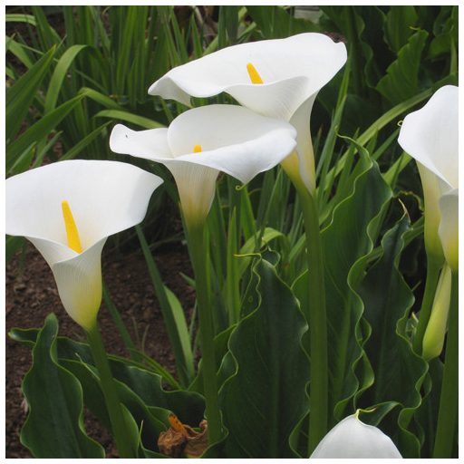 ZANTEDESCHIA AETHIOPICA - Biela kála - 5ks semien/balenie. Nílska ľalia, Ľalia biela, Kornútok africký.  Pochádza z južnej Afriky. Obľúbený kvet, ktorý sa veľmi rozšíril na miernom podnebí. Obľubujú ju ako rezaný aj ako črepníkový kvet. Tento typ môže rásť aj vo vode s hĺbkou 15-30 cm ako obrubníková rastlina. Rozmnožovať sa môžu v zime výhonkami. Hľuzovitá trvalka kvitnúca začiatkom leta, má odstávajúce stonkovité listy s kopijovitým plecom. Sériovo prináša snehobiele kvety v strede so žltým hlúbom. Obľubujú celkové slnko a prsotredie s dobrým odvádzaním vody. Minimálna teploa: -2°C