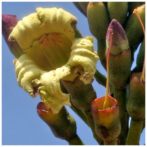 Oroxylum indicum - Tree of Damocles - Midnight Horror - Broken Bones Plant. Prirodzený výskyt: Ázia, Himalája a oblasti južnej Číny. Rastlina sa podobá stromu stredného rastu. Kvetenstvo kvitne v noci, môže byť žlté a červené. Opeľovanie vykonávajú netopi...