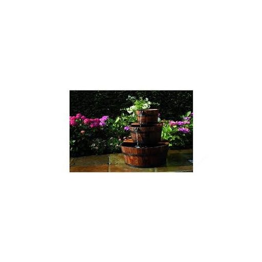 Rustikálna fontána pozostávajúca z troch drevených sudov. V každom sude je umelohmotný bazénik. S čerpadlom a mont. prvkami. Priemer: 32/46/59 cm - Výška: 72 cm - Bez osvetlenia