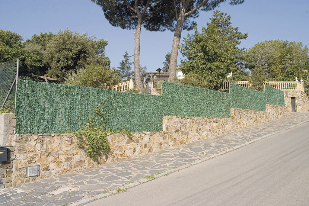 Umelý plot. Zelené a hnedé zloženie lístia zabezpečí prirodzený vzhľad. Kovové nite na koncoch sú ohýbateľné