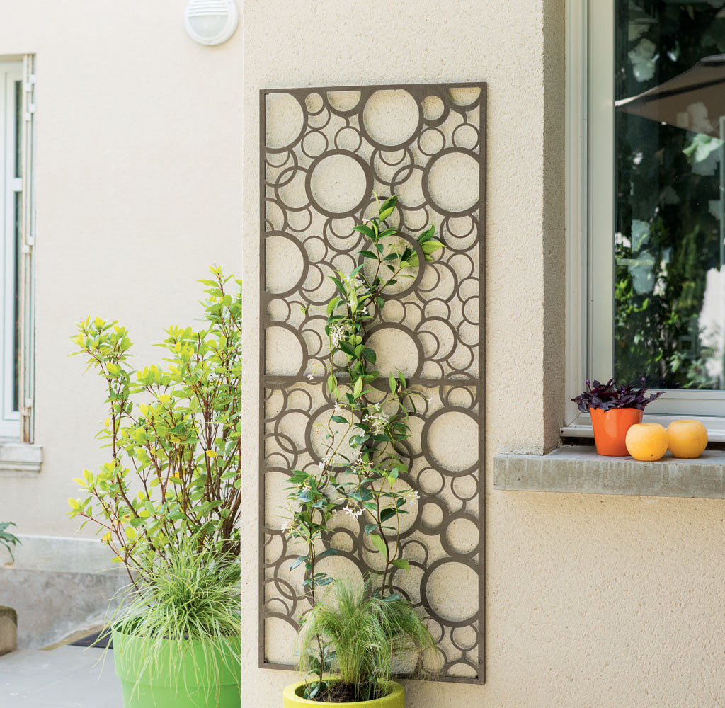 Kovový panel s dekoratívnym motívom. Vhodný na  aplikáciu ako výbeh pre rastliny, ale ako rozdeľovací panel je tiež výborným riešením. Možná je montáž na stenu alebo za pomoci dielcov možno vpichnúť do zeme.
