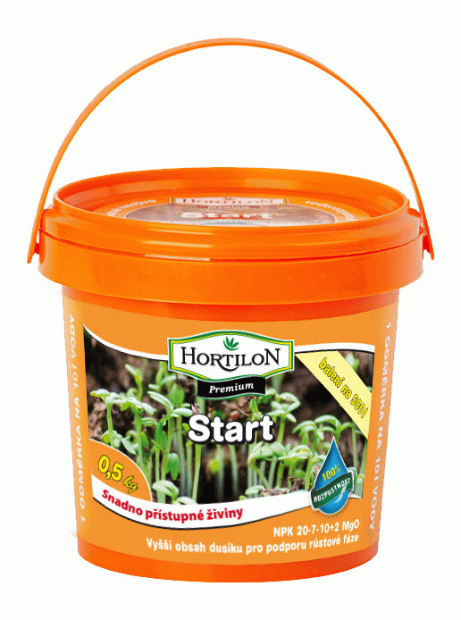 Popis a zloženie: Hortilon Premium Start slúži na počiatočné vyživovanie rastlín. Zabezpečuje vyváženú výživu (NPK (+ MgO) 120-7-10 (+2) + mikroživiny) v období prvých týždňov rastu. Vďakavysokému obsahu dusíka je vhodný aj na ďaľšie oplodnenia (1-3 použitia) na začiatku alebo na podporu rastu.