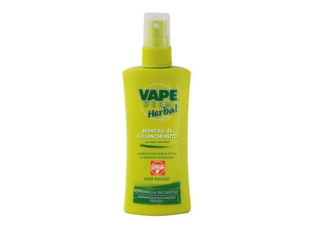 A VAPE Derm Herbál repelent proti komárom a kliešťom v pumpovacom aerosole sa na pokožke nelepí; vďaka obsahu eukalyptu a citrónely pôsobí osviežujúco - popri odpudzovaní kliešťov a komárov. Ochrannú plochu pokožky dôkladne nastriekajte. V závislosti od aplikovaného množstva poskytuje 2–3 hodiny úplnú ochranu proti sajúcim hmyzu. Pre dlhší účinok opakujte aplikáciu. Nepoužívajte v uzavretých priestoroch, a po príchode z vonkajšieho prostredia umyte repelent dôkladne veľkým množstvom mydla a vody. Poskytuje účinnú ochranu aj proti tigrím komárom. Dermatologicky testované.