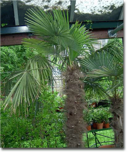 Trachycarpus fortunei - čínska konopná palma - pochádza z Číny, západných Himalájí a Japonska. Jej kmeň rastie v prírodných podmienkach do výšky 12 až 15 m. Jej kmeň je pokrytý dlhými tmavohnedými bohatými vláknami. Jej listy v tvare ventilátora sú tmavo zelené, s priemerom 50 až 70 cm, narezané takmer na stopky a namodralé na chrbte. Palmy, ktoré sa dajú vysádzať aj vonku. Vždyzelené palmy, ktoré kvitnú v lete pre svoj habitus, listy a kvety.