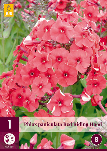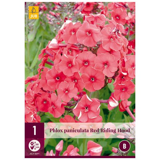 Phlox paniculata Red Riding Hood je krásna voľba pre zelenú a bielu kvetinovú záhradu. Kvety sú v púči stočené, rozdelené na päť okvetných lístkov a otvor v strede. Kvety vyžarujú sofistikovanú vôňu a sú atraktívne pre motýle. Phlox paniculata Red Riding Hood je trvalka, ktorá najlepšie rastie v otvorenom teréne.