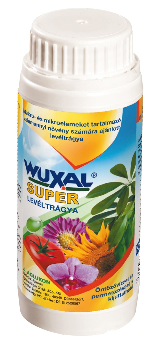 A Wuxal az első olyan műtrágya, amely az alapvető tápelemeken kívül hatásfokozó és környezetkímélő adalékanyagokat is tartalmaz.A Wuxal® Super a növény számára optimális tápanyagfelvételt tesz lehetővé. Magyarország egyik legkedveltebb levél- és öntözőtrágyája. Hatékony tápanyagellátást tesz lehetővé minden növényi kultúrában, cserepesnövényektől a házi kerti növényekig.