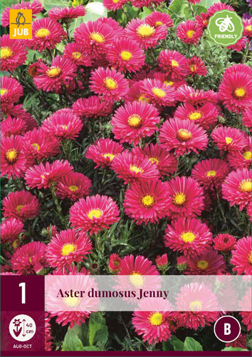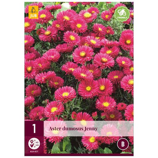 Aster Jenny dorastá približne 30–40 cm. Jej červené kvety kvitnú od augusta do októbra. Tento druh patrí do skupiny Dumosus, vytvára vankúšovitý tvar. Niekedy kvitne tak bohato, že celé rastliny sú pokryté kvetmi. Toto kvitnutie začína v auguste a trvá do októbra. Kvety navštevujú motýle. Jenny možno dobre vysadiť aj do kvetináča. Dobre rastie v bežnej záhradnej pôde. Slnečné stanovisko je výhodné, ale znesie aj mierny tieň. Znesie aj isté sucho.