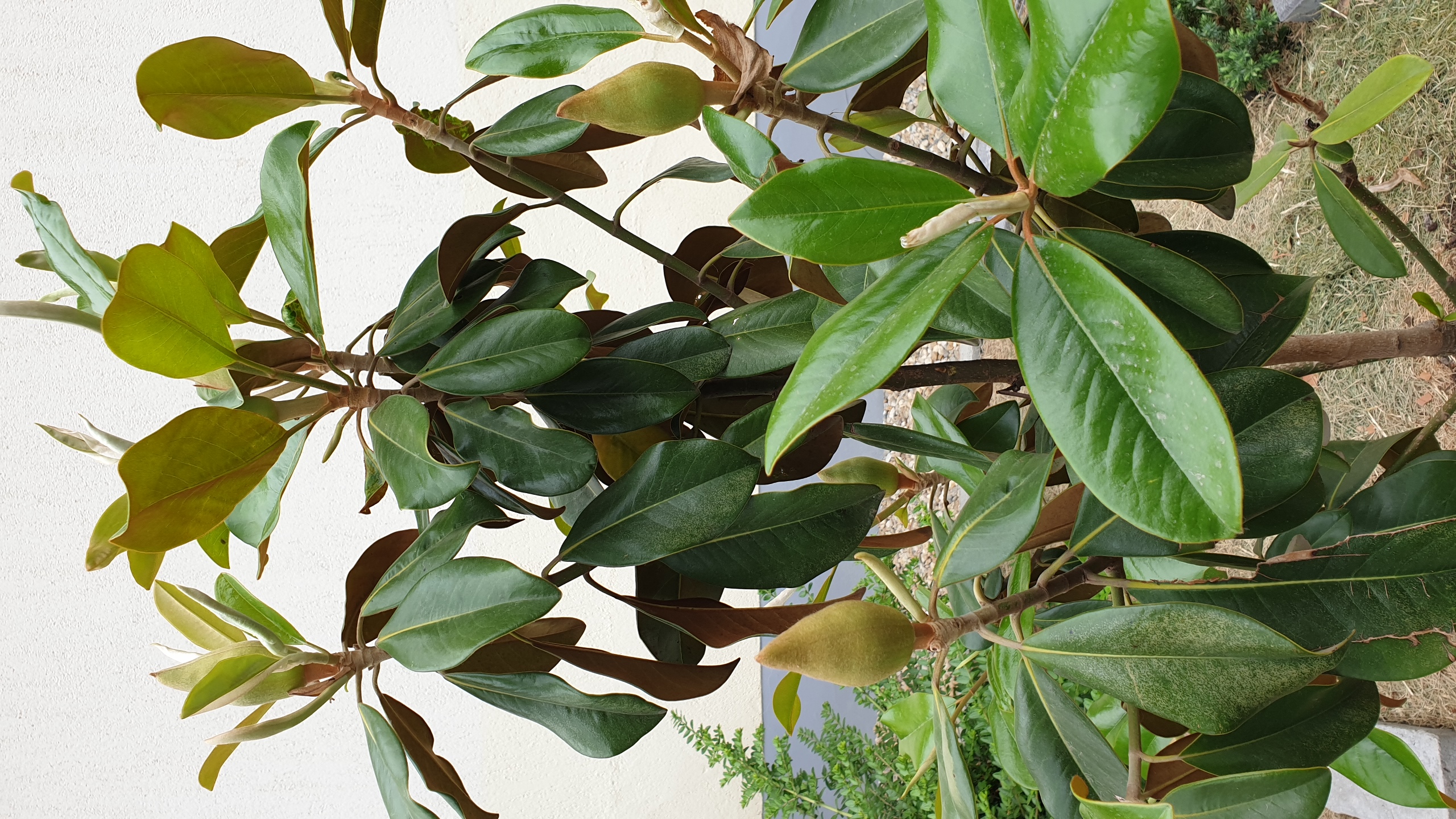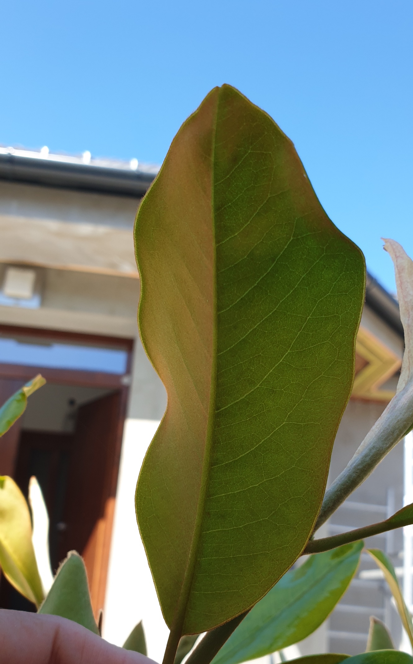 Az ősszel ültettük a mellékelt fotón szereplő örökzöld magnóliát. A fotókon szereplő betegség megfejtésében kérem a segítségét. Lógnak a kis fa levelei, kicsit száraznak "élettelennek" tűnnek, a levélfonákon penészre emlékeztető szürkés elszineződést látok, a levél színe is kezd foltosodni. Friss leveleket hoz. A talaj semleges, ültetéskor savanyú viragfölddel lett keverve a takaró talaj.
