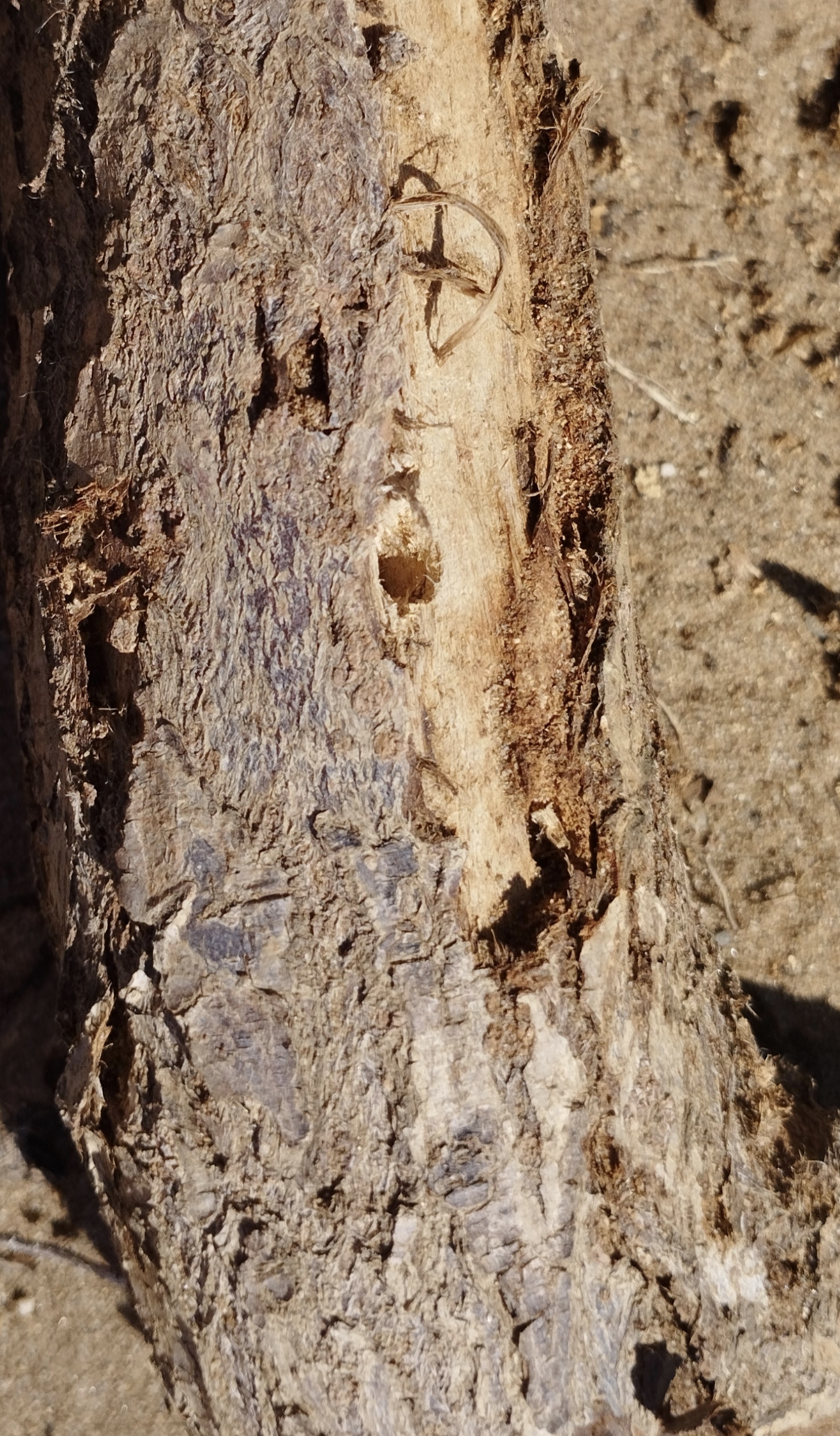Egy kis részen le kellene fejteni a kérget, és megnézni, hogy van-e alatta valamilyen járat. A fasebkezelő jó megoldás, kezelés után be is kellene kötözni, erősebb gézzel, vagy jutacsíkkal a törzset a kritikus részen.