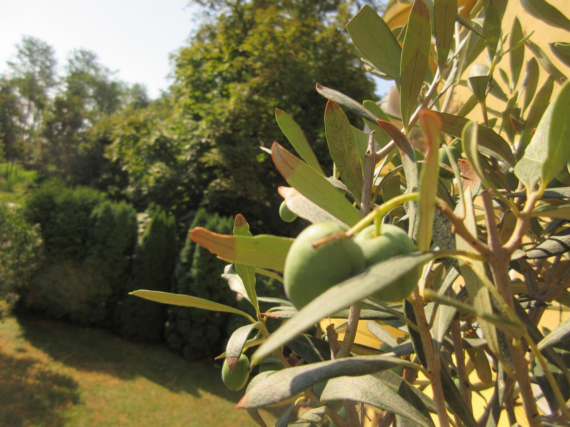 Májusban vettem egy cserepes olajfát, átültettem egy nagyobb agyagcserépbe, talajtakarásnak mulcsot használtam.