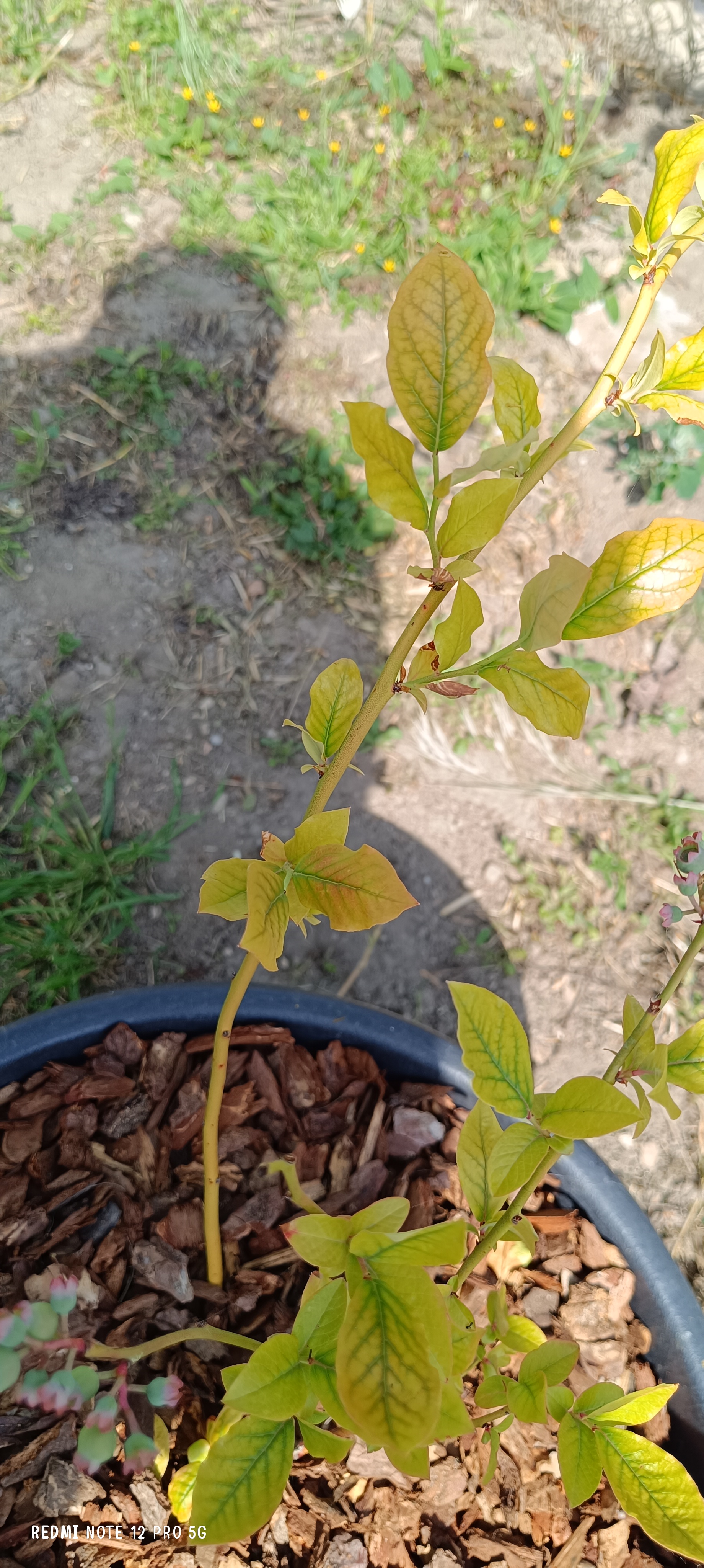 2 áfonya bokor egymás mellett 2 évesek. A levelek sápadtak,sárgásak.