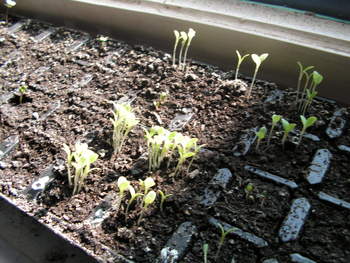 A palánták azért nyúltak meg, mert nincsenek eléggé a napon. Az ablakkeret beárnyékolja őket. Fel kell emelni a tálcát, pl. műanyag dobozt kell alátenni. A salátának egyébként nem kell a meleg (sőt, kb. 10-15 fok bőven jó), csak a fény.