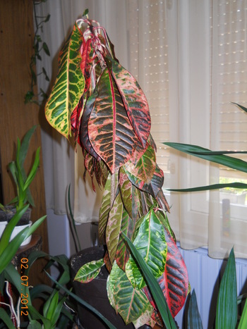Úgy látom, elég hosszú darabot vágott le a krotonból. Ezt fel lehet még darabolni, 20-25 cm-nél egyik darab se legyen nagyobb. A gyökereztetéshez dugja bele egy cserép földbe külön-külön a darabokat. Az alsó leveleket távolítsa az, a felsőket felére metssze vissza. Helyzette árnyékos helyre a cserepeket.