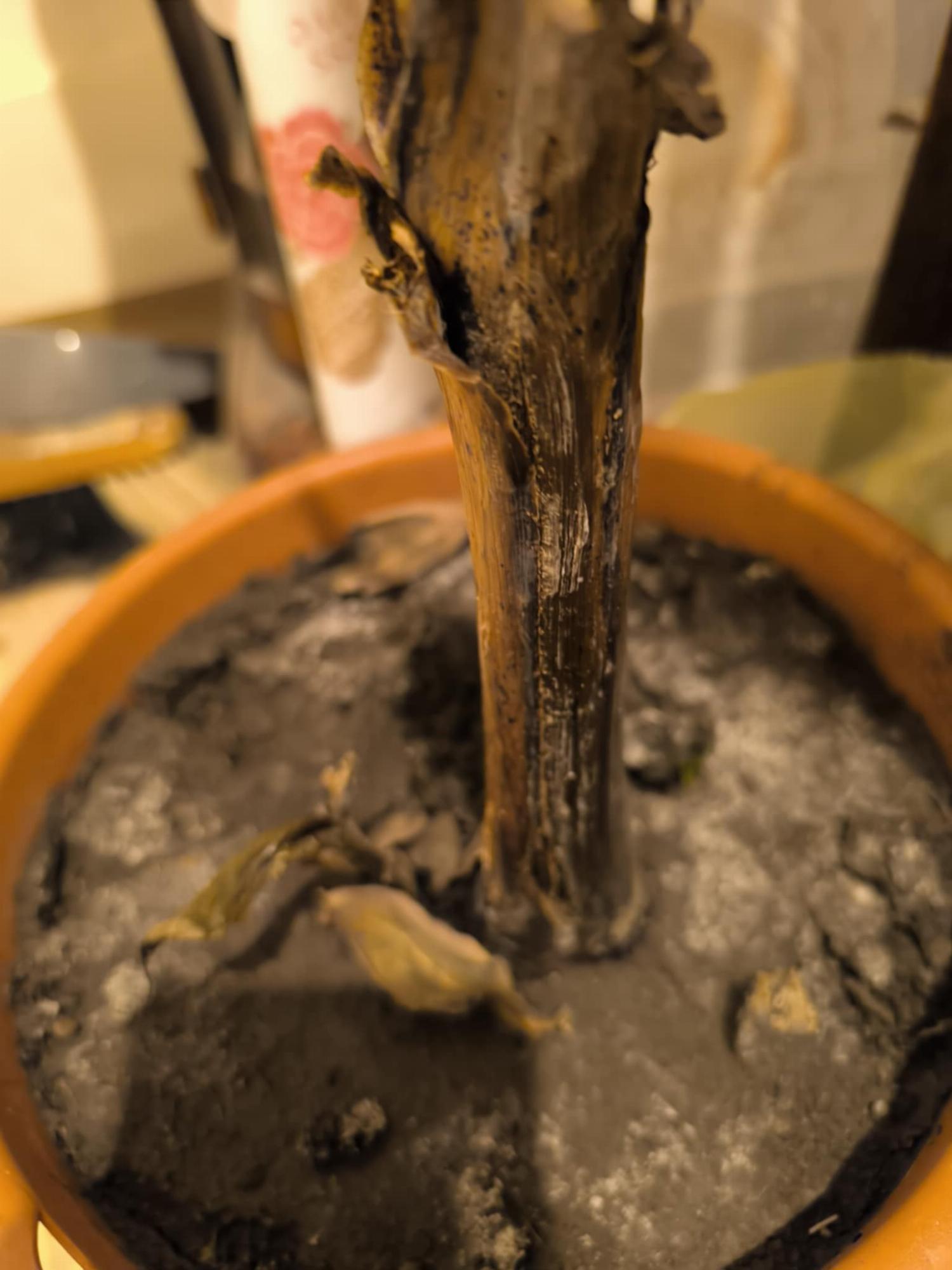 Kedves Ilona. A talaj előg kötöttnek, agyagosnak látszik. Kertből kiásott földbe lett ültetve? Úgy tűnik, mintha megfázott volna a növény. Ki kellene emelni a talajból és megvizsglni a gyöktörzset, van-e friss hajtás. Ha nincs, akkor sajnos elpusztult a növény.