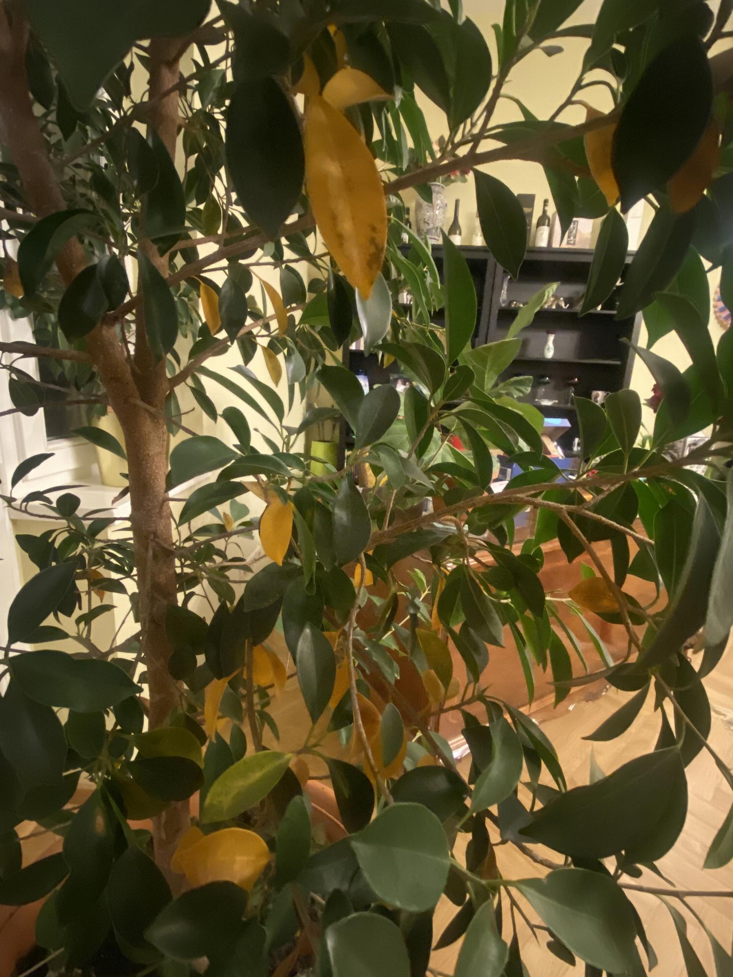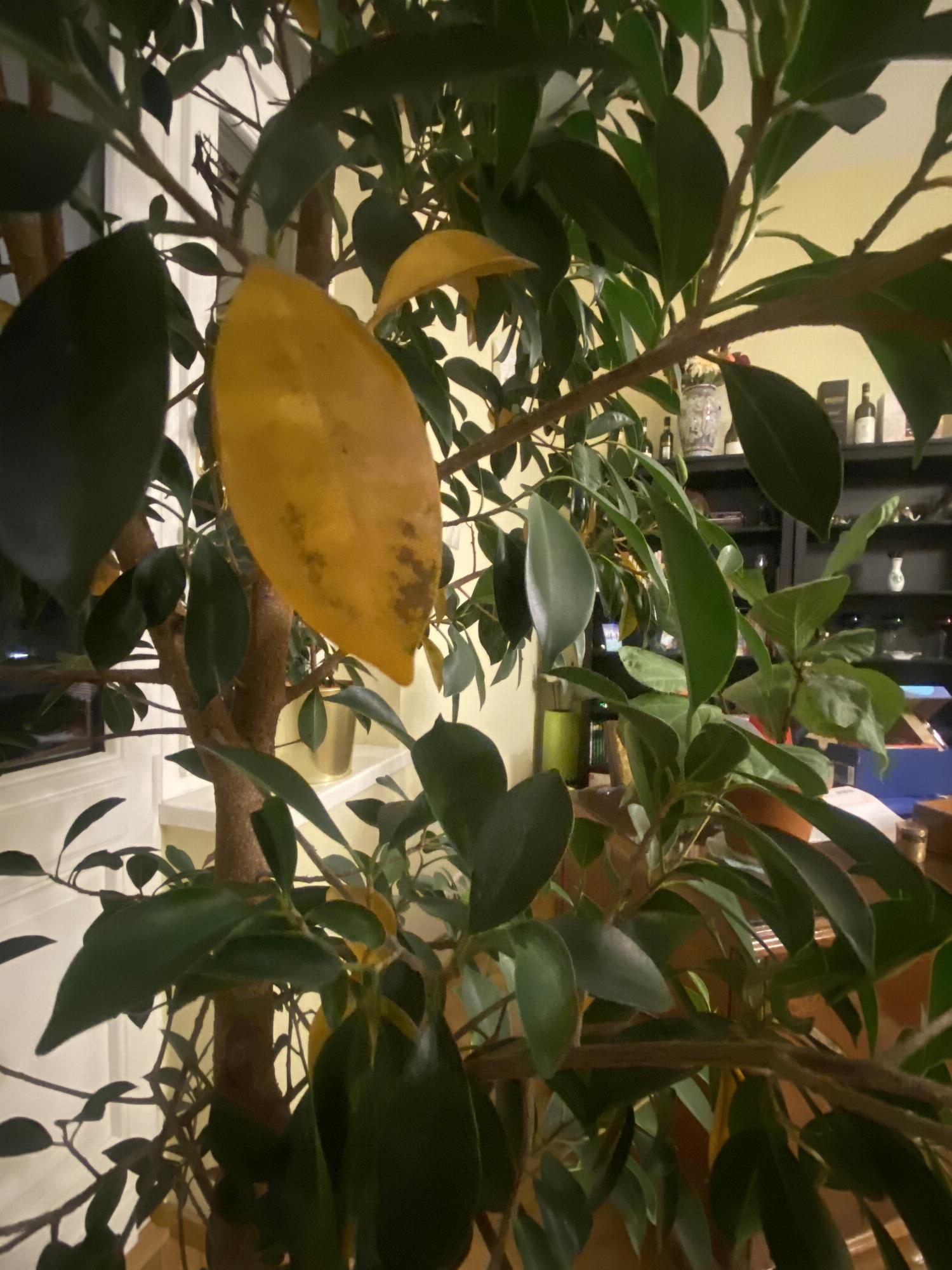 Egyszer már idén tavasszal sikerült megállítani a sárguló leveleket azzal, hogy 42 cm-es kaspóból egy 55-cm-esbe ültettem át, viszont most, hogy ismét bent kell tartózkodjon, elképesztő arányban elkezdtek sárgulni, majd barnulni és leesni a levelei. Nem homogén földet választottam az átültetéskor, hanem ált. virágföldet és kifejezetten zöld növényeknek szánt földet kevertem össze.