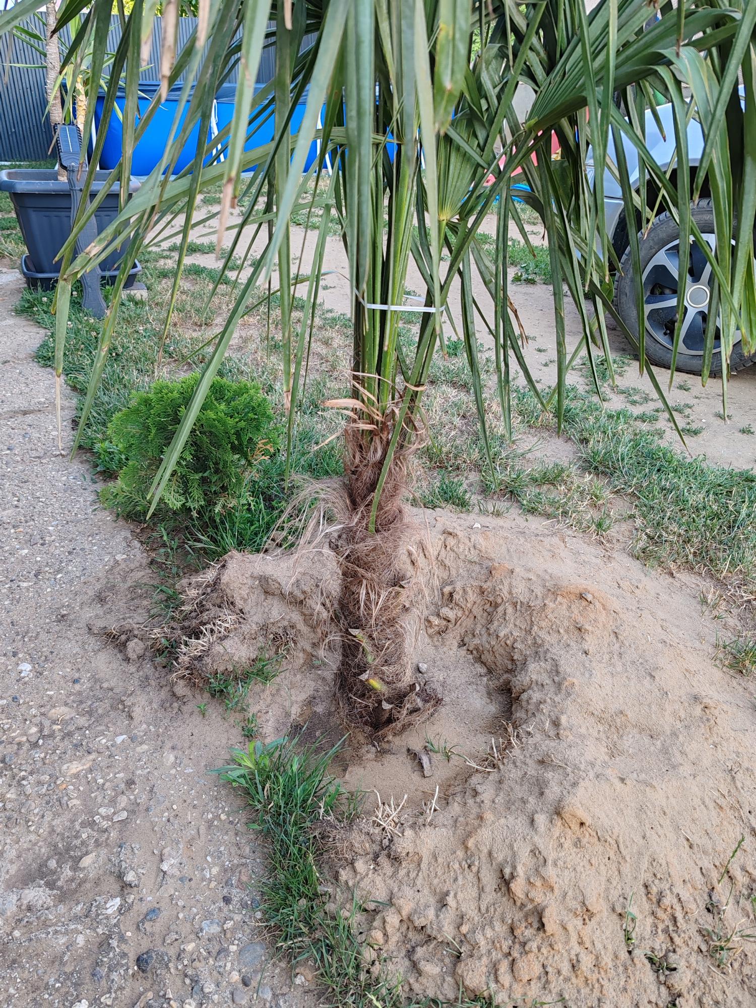 Kedves Katalin... Két hete lett kiűltetve. Kínai kenderpálma. Mi lehet a baj ? Mit tegyek ? Elég fura....élettelennek tűnik🫤 muszáj volt összefogni.,félő hogy lassan a szél is eltördeli. Köszönöm szépen a segítséget előre is. Öntözés este ...minden nap...illetve hetente tápoldatozva is van.