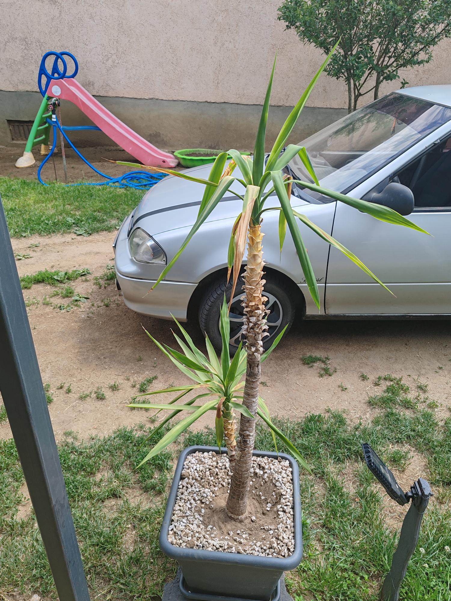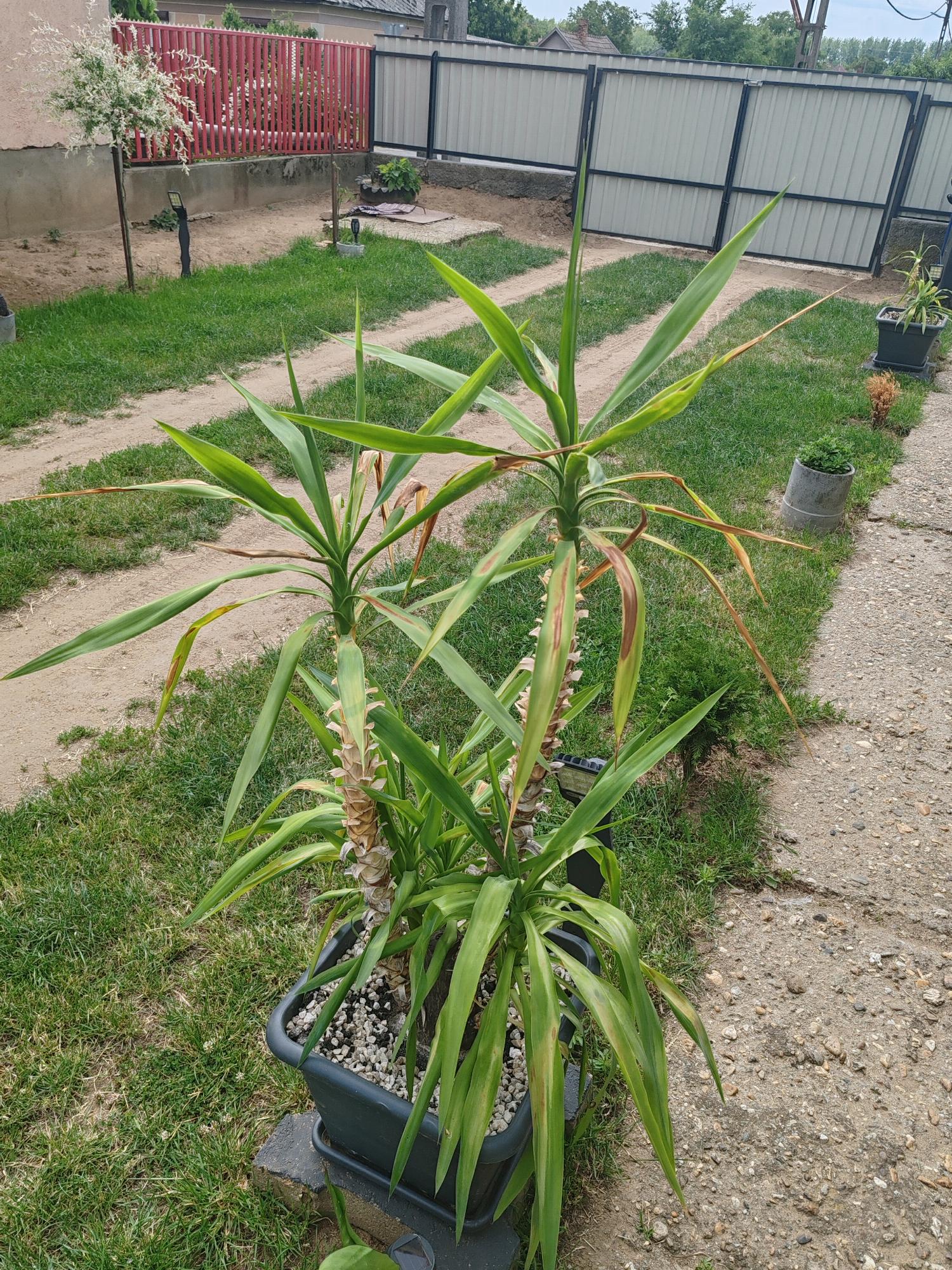 Kedves József. A jukkákat mikor vitte ki a szabadba? Hirtelen kerültek ki a lakásból a napfényre? Nagyon úgy tűnik, hogy napégés a tünet. Az edény is kicsi.