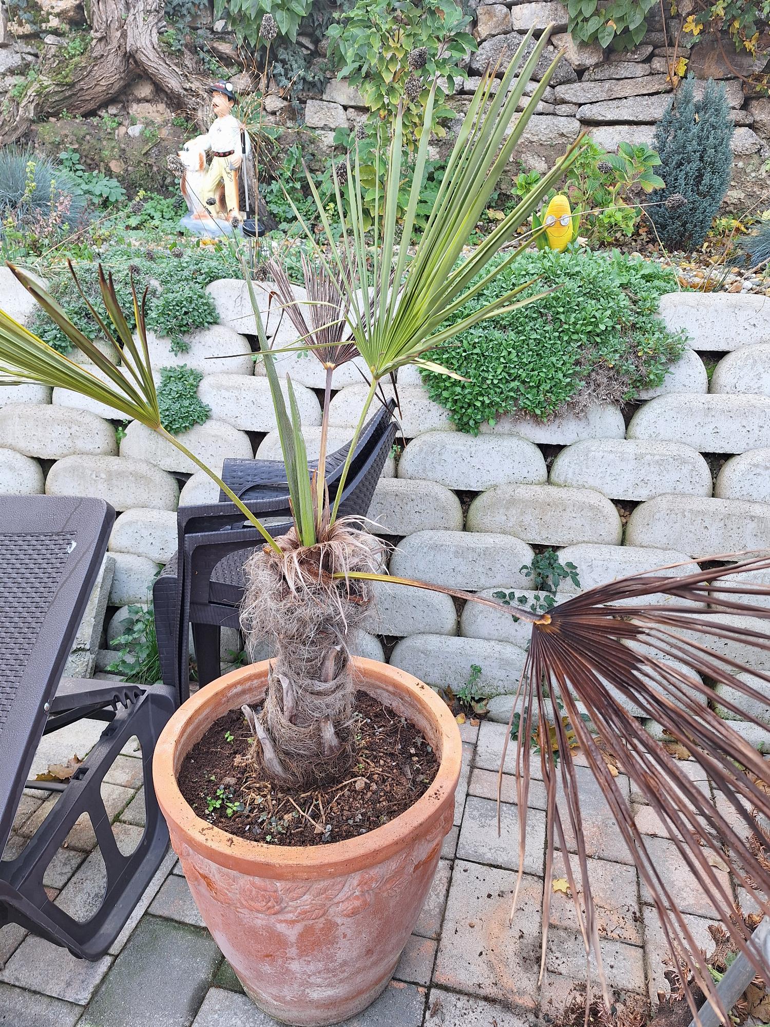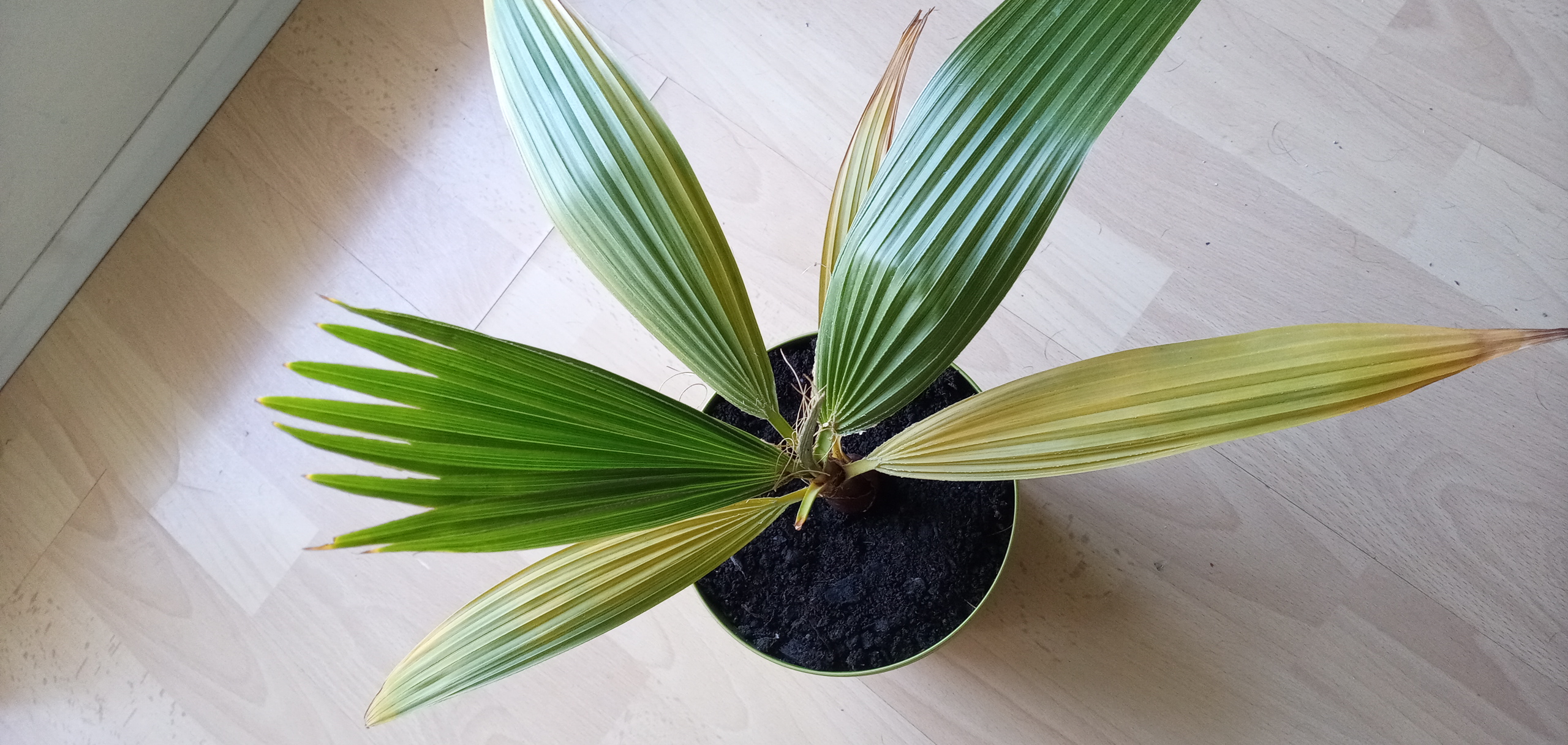 A születésnapomra kaptam ezt a kínai kenderpálmát. Nyáron még gyönyörű zöld pálmám volt, télire a garázsba lett költöztetve. Mostanra egy sárguló növény díszíti az előkertünket és sajnos nem tudjuk mi történhetett vele. Úgy látom az új levelek sem szép sötétzöldek. A családban van már egy több mint 40 éves datolyapálma, soha ilyen baja nem volt . Mit csináltunk rosszul? Kérem szépen segítségét!