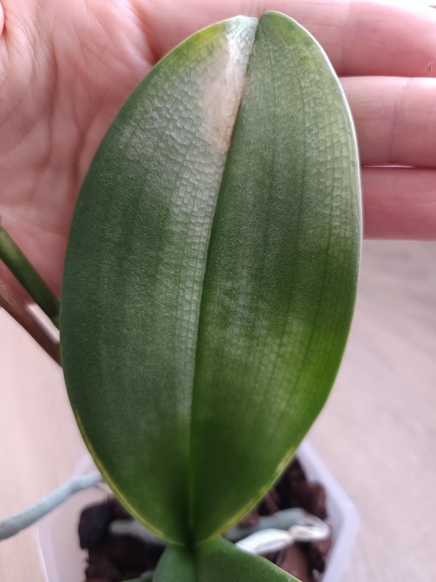 3 hete kaptam egy kétágú nagyon szép virágos orchideát. Kitettem a többi orchidea mellé ugyanarra a párkányra, a másik ablakra. Azt vettem észre, hogy egy levele elkezdett fehéredni, majd a fehéres részen elszáradni. Azt el is kellett távolítani. Picit távolabb hoztam az ablaktól, de újabb levél ilyen. A harmadik pedig furán rücskös tapintású egy részen. A virágok szépek. Csatolok képeket a 2 levélről és a virágokról, mi lehet a baj? Betegség? Vagy a nap? Hogyan hozzam helyre? Köszönöm szépen!