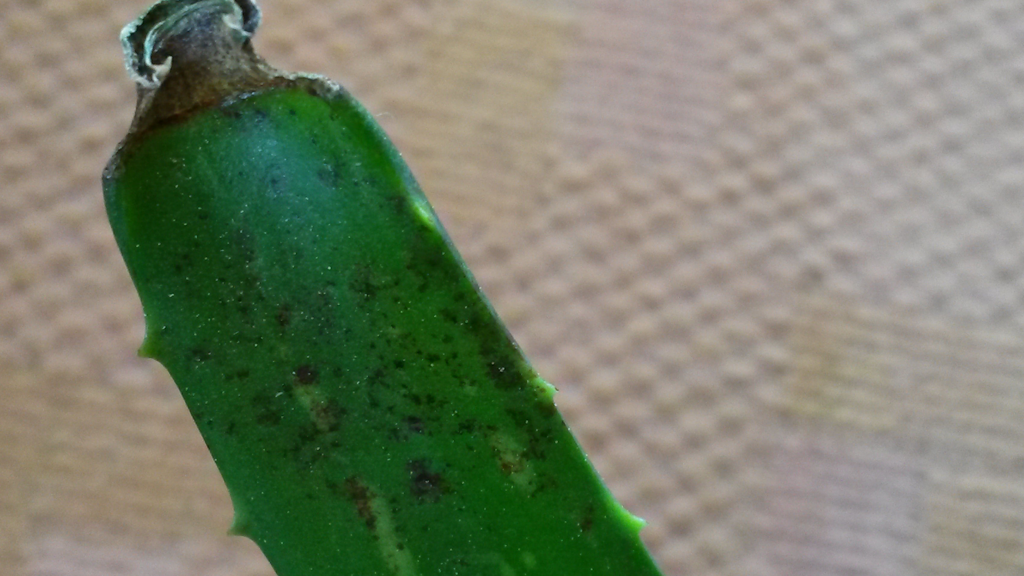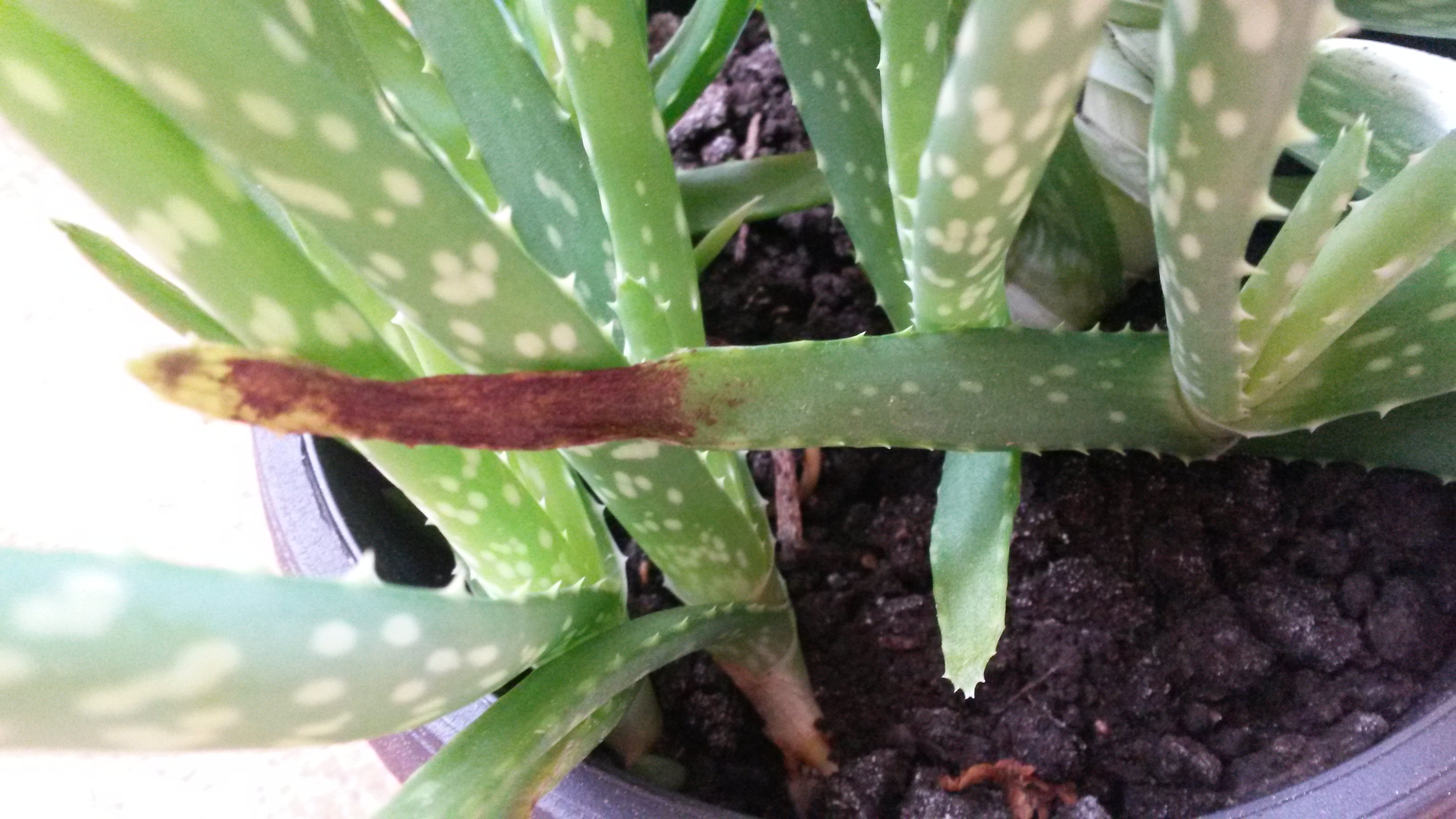 Jo napot! Kedves szaktanacsado a segitseget szeretnem kerni az aloe veraimmal kapcsolatban. Apro, fekete, le nem kaparhato pottyok jelennek meg rajta es a levelek vegei lezdenek elszaradni. Mitol lehet? Direkt napfenyt nem kap de vilagos helyen van. Ontozni hetente/ 2hetente szoktam. Mindket cserepben a nagy noveny mellett van 5-6 kb 20 cmes kicsi noveny. Koszonom szepen