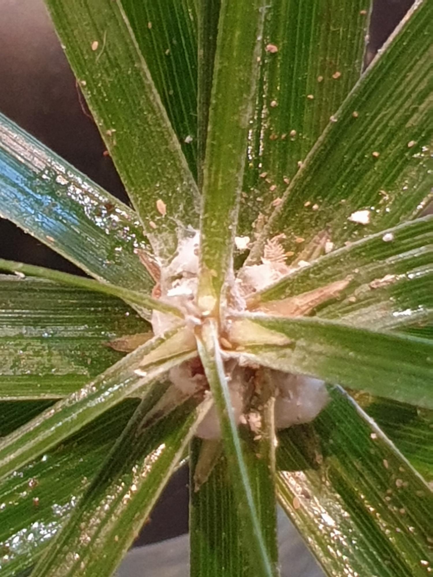 Mi a baja a vizipálmának? Fehér, ragacsos főleg a levelek tövénél. A száron is van belőle.