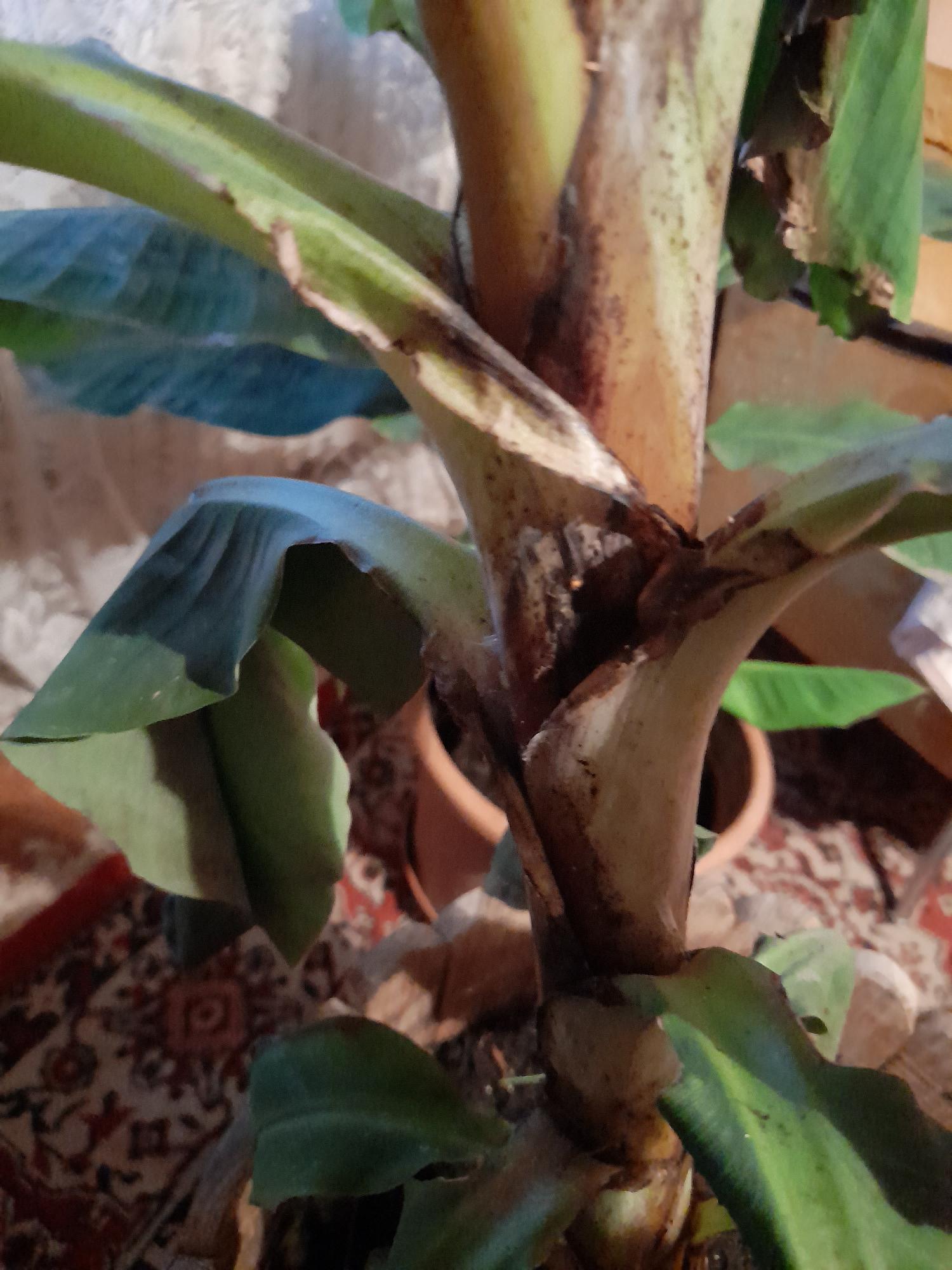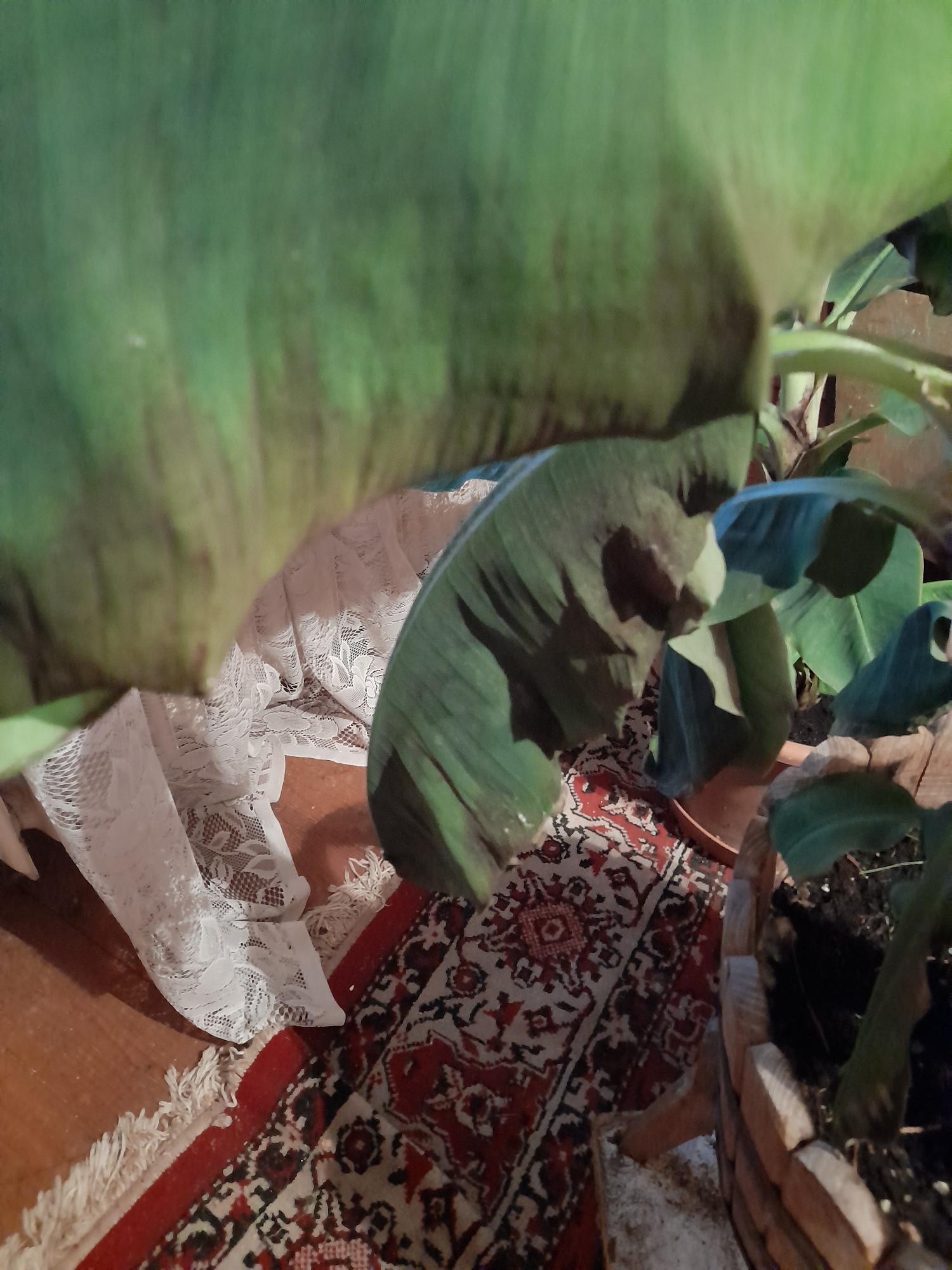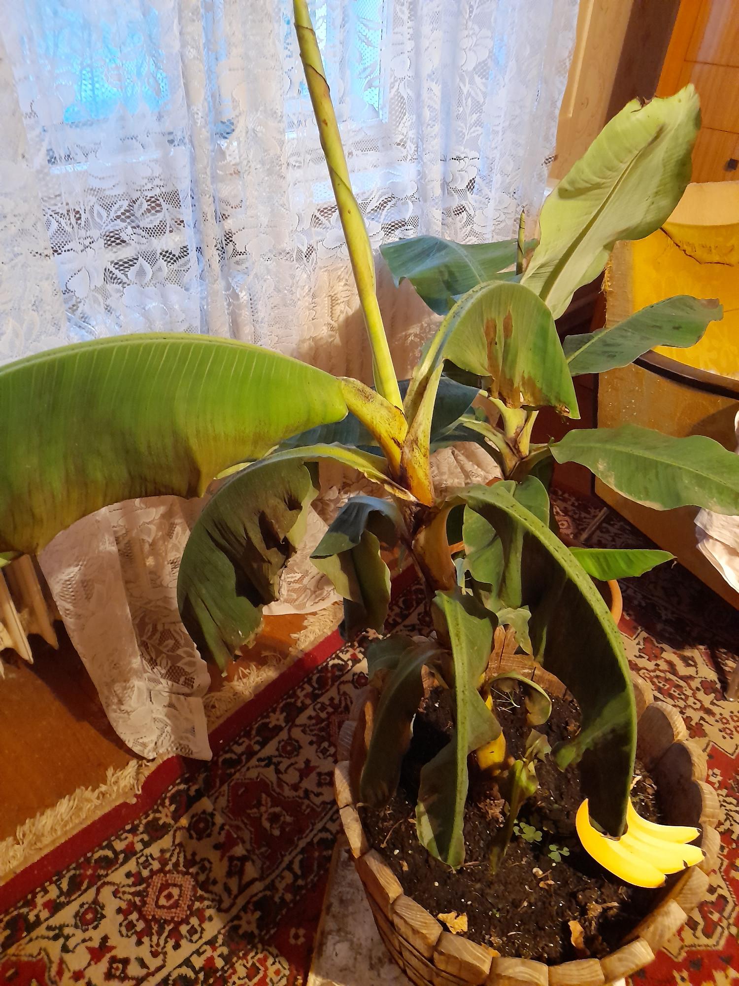 Természetes, hogy a banán talaj feletti részei télen elpusztulnak. A talajból való kiemelelés és becserepezés károstíotta a gyökereket, amit sokként élt meg a növény. A tövét takarva a kertben is átteleltethető. Kerülje a túlöntözést, csak a pusztuló leveleket távolítsa el.