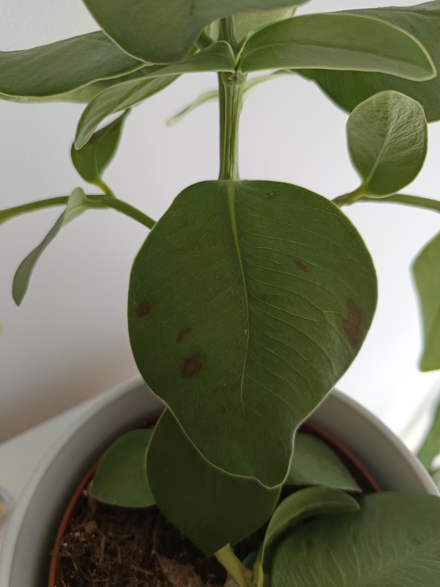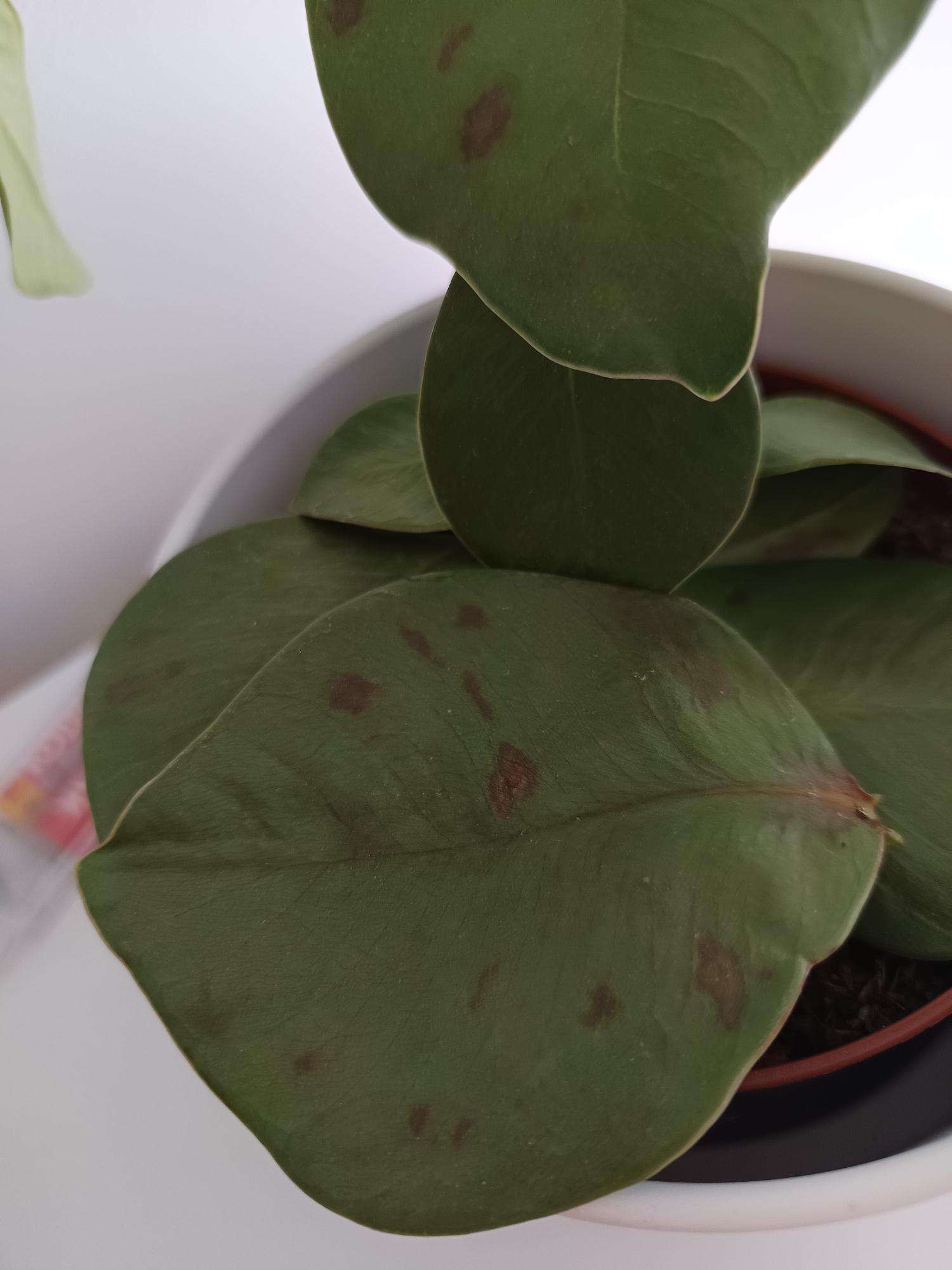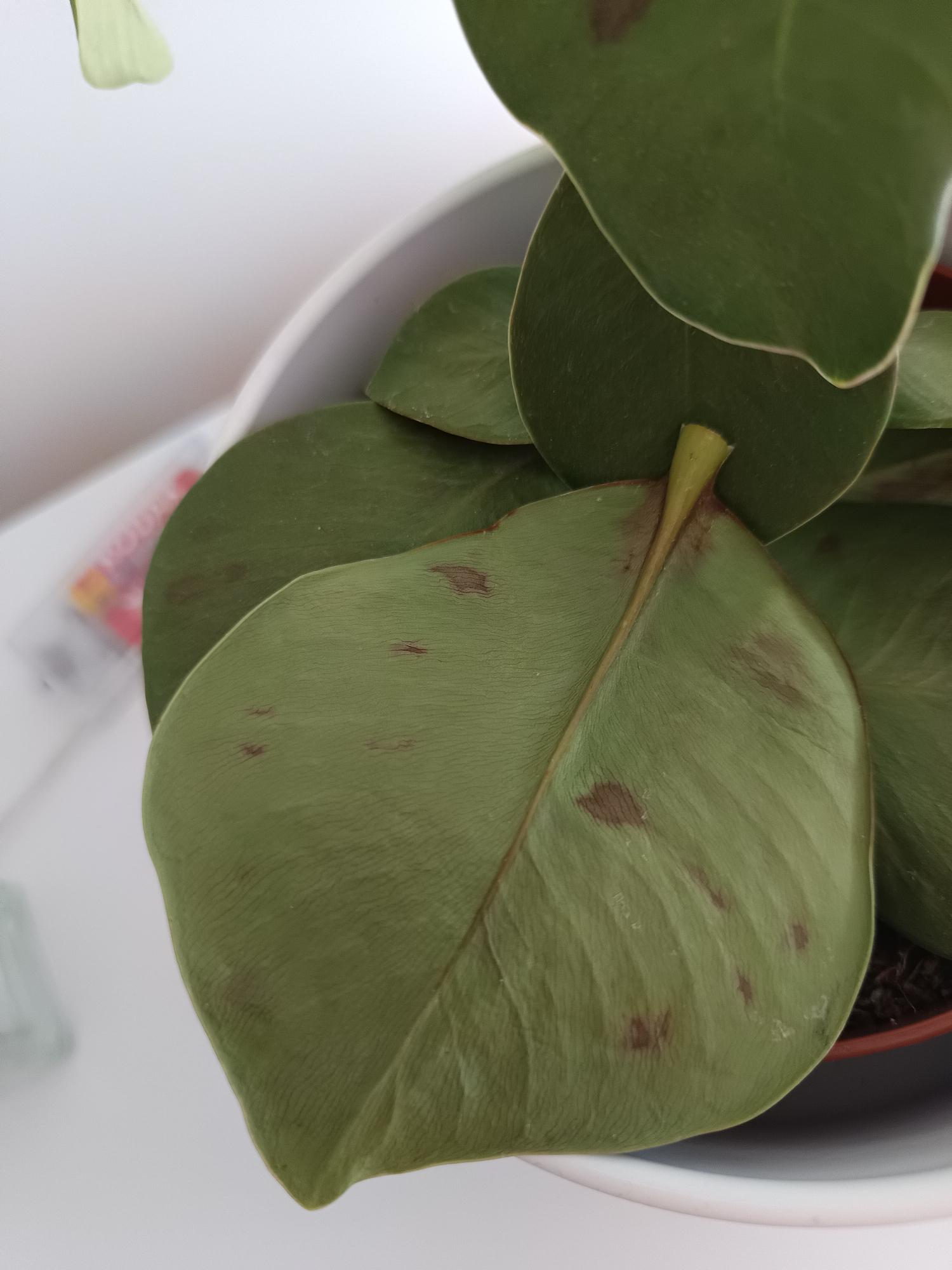 A clusiám levelei fonnyadtak, barna foltok jelentek meg a leveleken. A leveket picit erősebben megfogva azok lepotyognak.