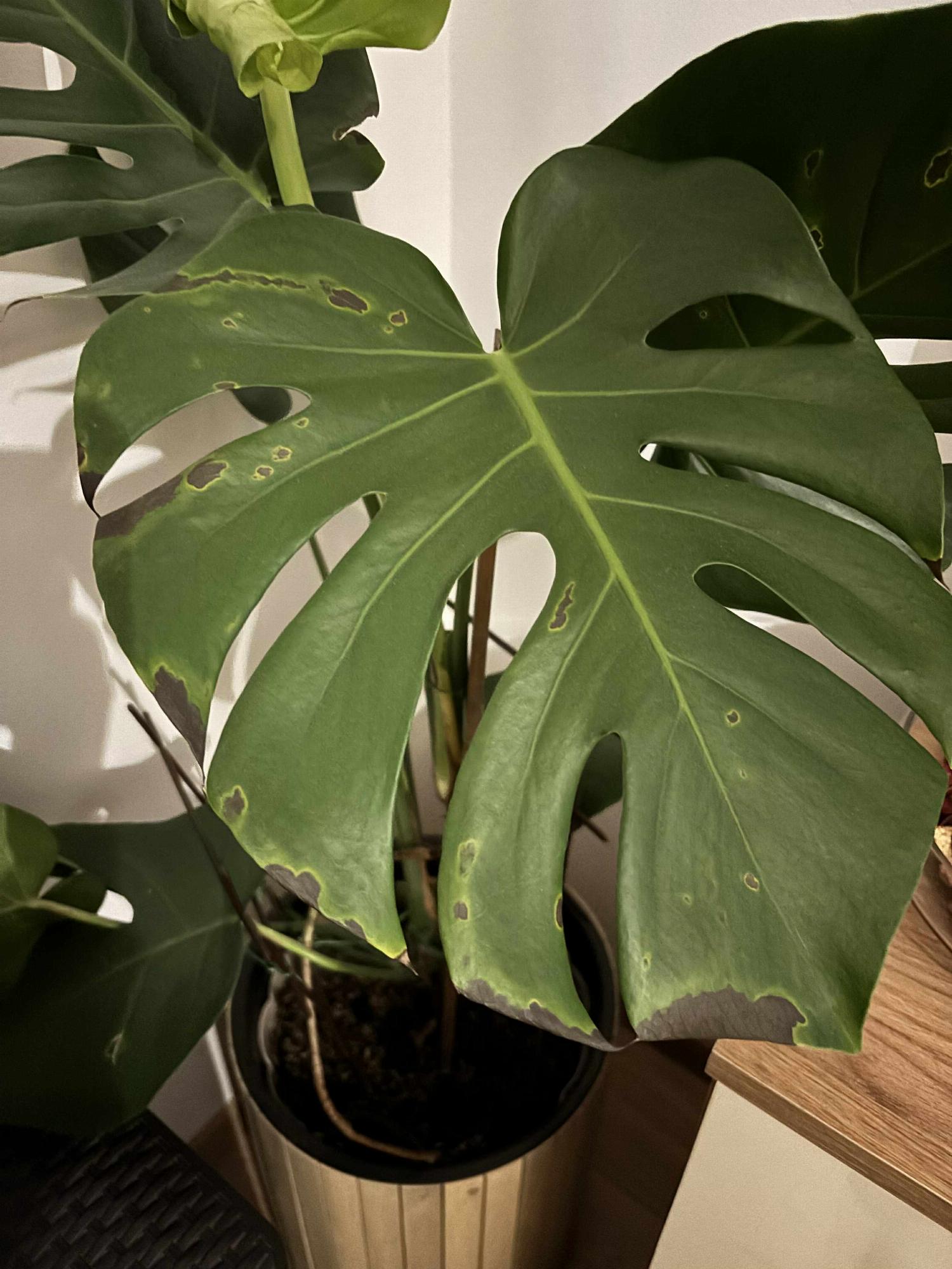 Kedves Katalin ! Kb.szeptember közepén átültetett filodendronomon kb.1-2 hete a képen látható foltosodás jelent meg...környezet ( lakás változás ) is történt az átültetés után...Mi lehet az oka? Köszönöm a tanácsokat ! Gabi
