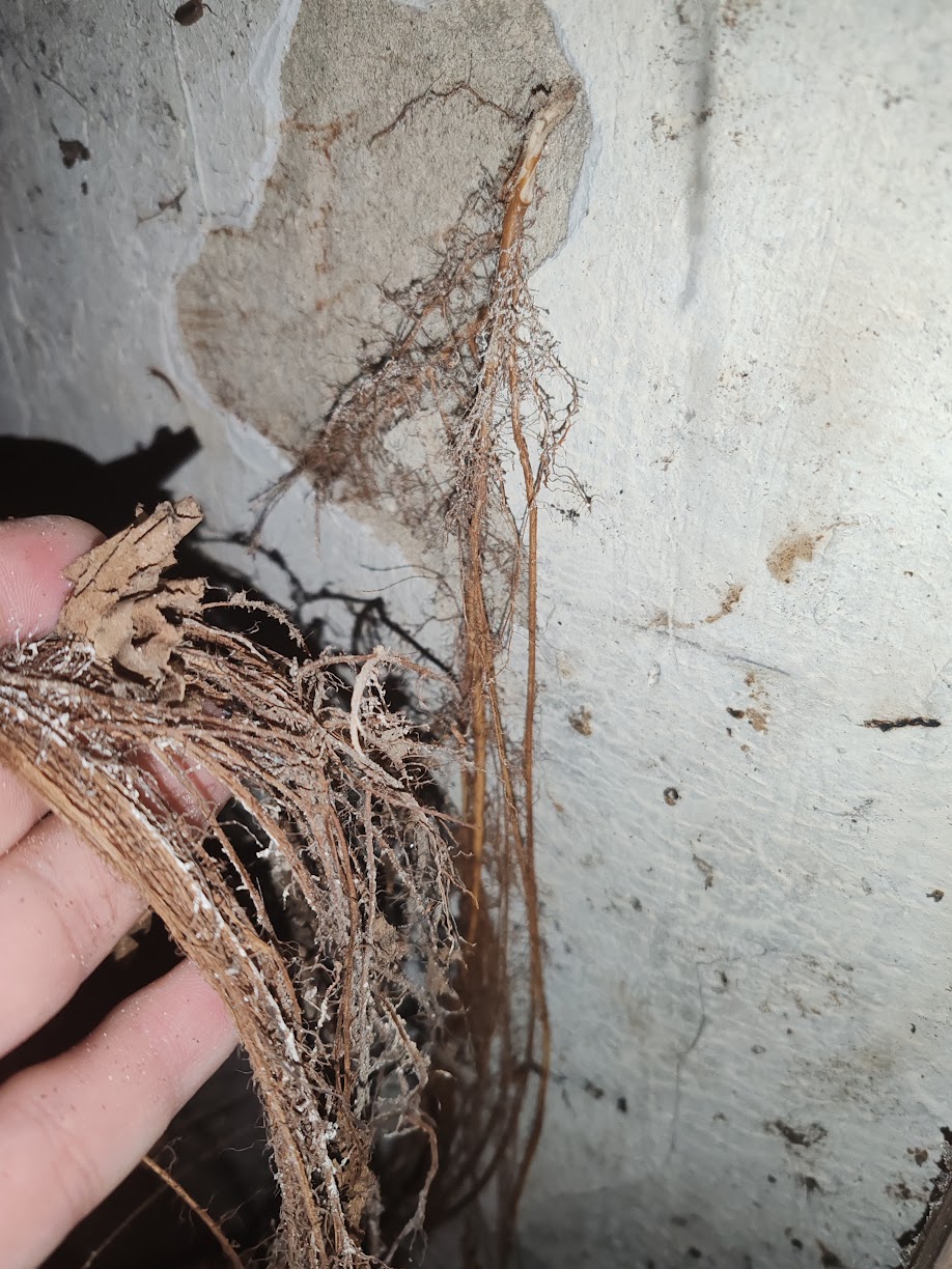 Lehet hogy egy eltévedt borostyán gyökér! Mivel télen vagy nincs, vagy nagyon lassú a nedvkeringés nem lesz hatékony a kezelés! Intenziv növekedésben kell hozzányulni! A professzionális szerekhez növényorvosi recept kell! Pl Mezzo. Adblue, és egyéb házipraktikàk is müködhetnek. Ez esetben fontos hogy mennyi vizbe rakjuk! Legalább 50% viz legyen! Ha megsértjük a gyökeret a Glifozát is jó lehet, bár ez a növénytöl is függ!