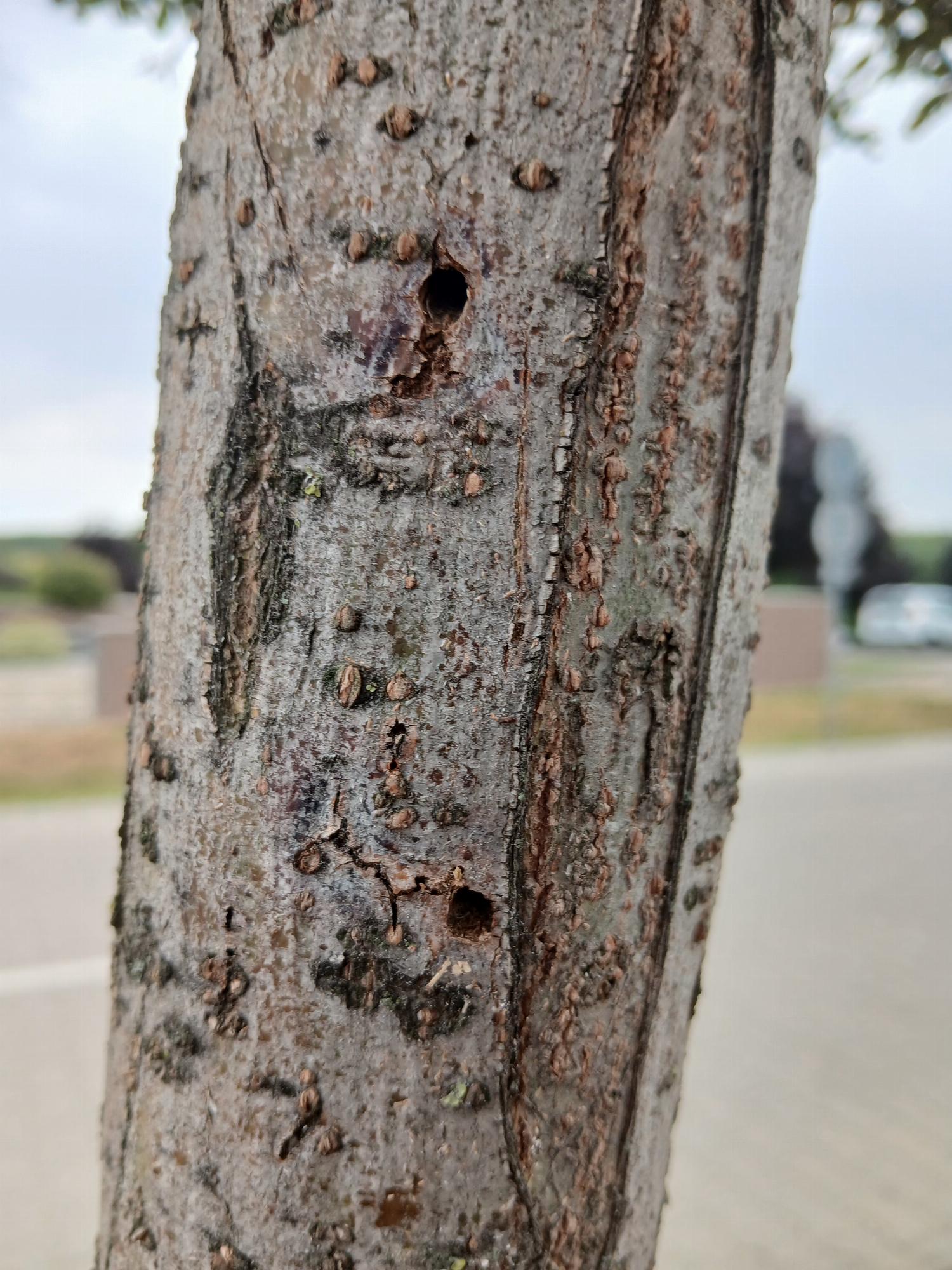 Mospilannal le lett permetezve, kapott lombtrágyat a fa,de észre vettük azóta a furatokat.