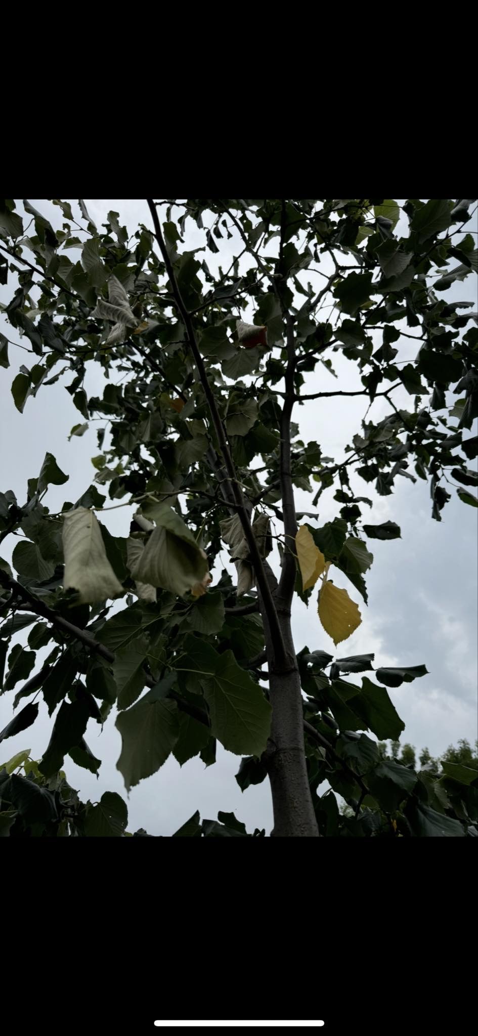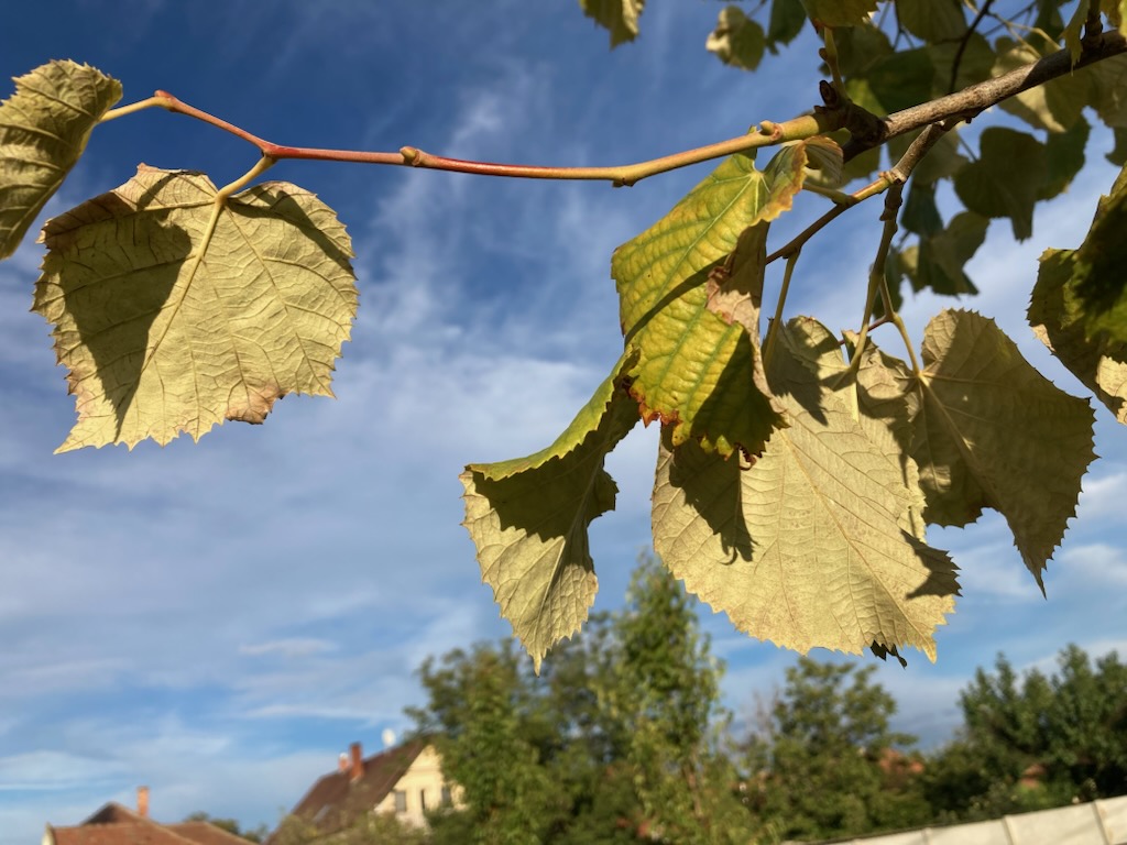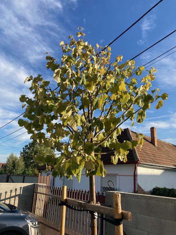 A képen látható ezüst hársnak sárgul a levele, illetve el is dobálja.