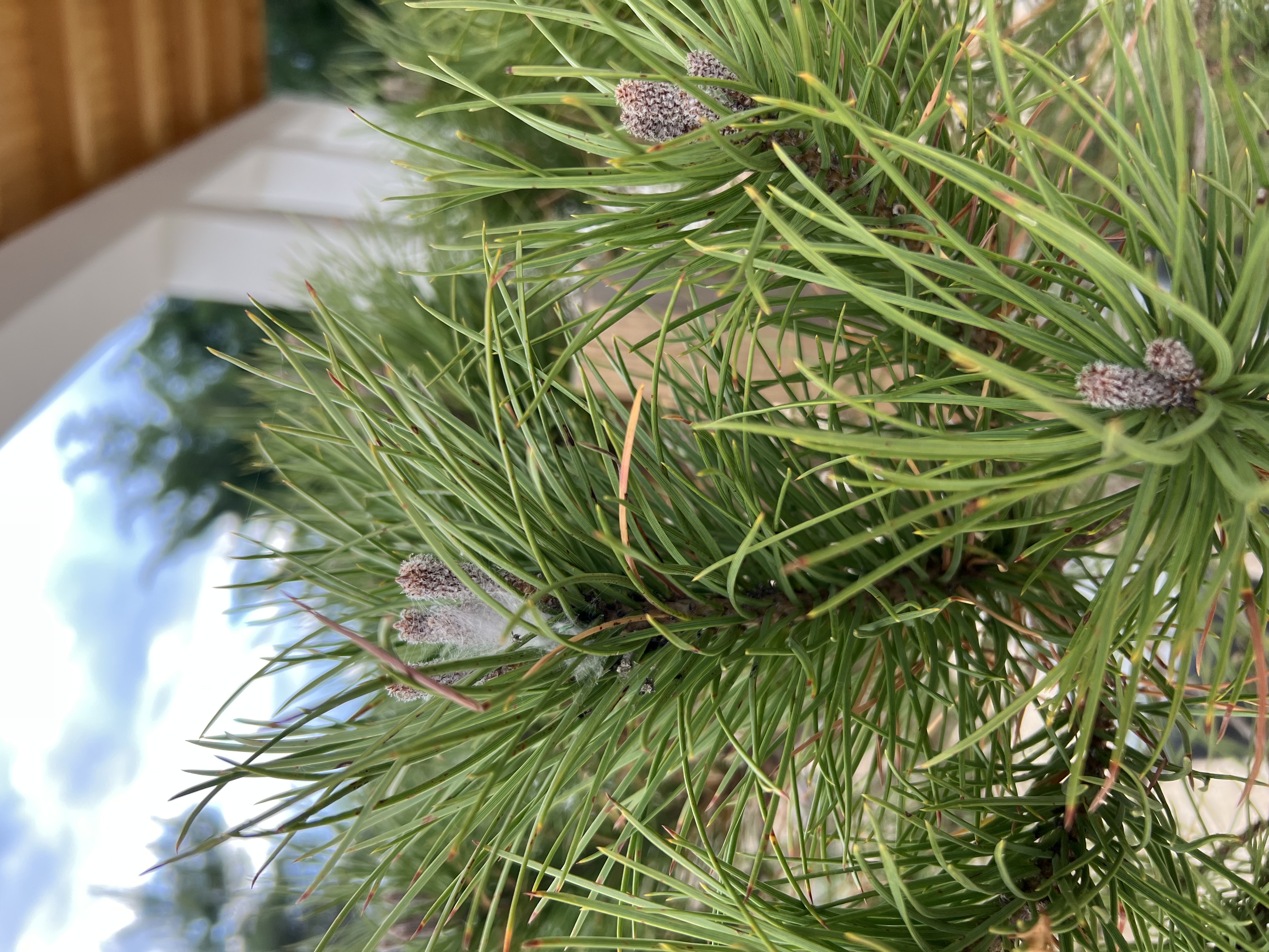 Vásároltunk egy mandulafenyőt, mely alulról elkezdett sárgulni. Dézsában volt, átültettük egy nagyobb dézsába, hátha a talajösszetétel és a vízelvezetés lehet a gond. Sajnos a sárgulás és a levélhullás nem állt meg. Egy két helyen fehér pamacs van. Menthető még valamilyen módon a fa? Segítségüket előre is köszönöm!