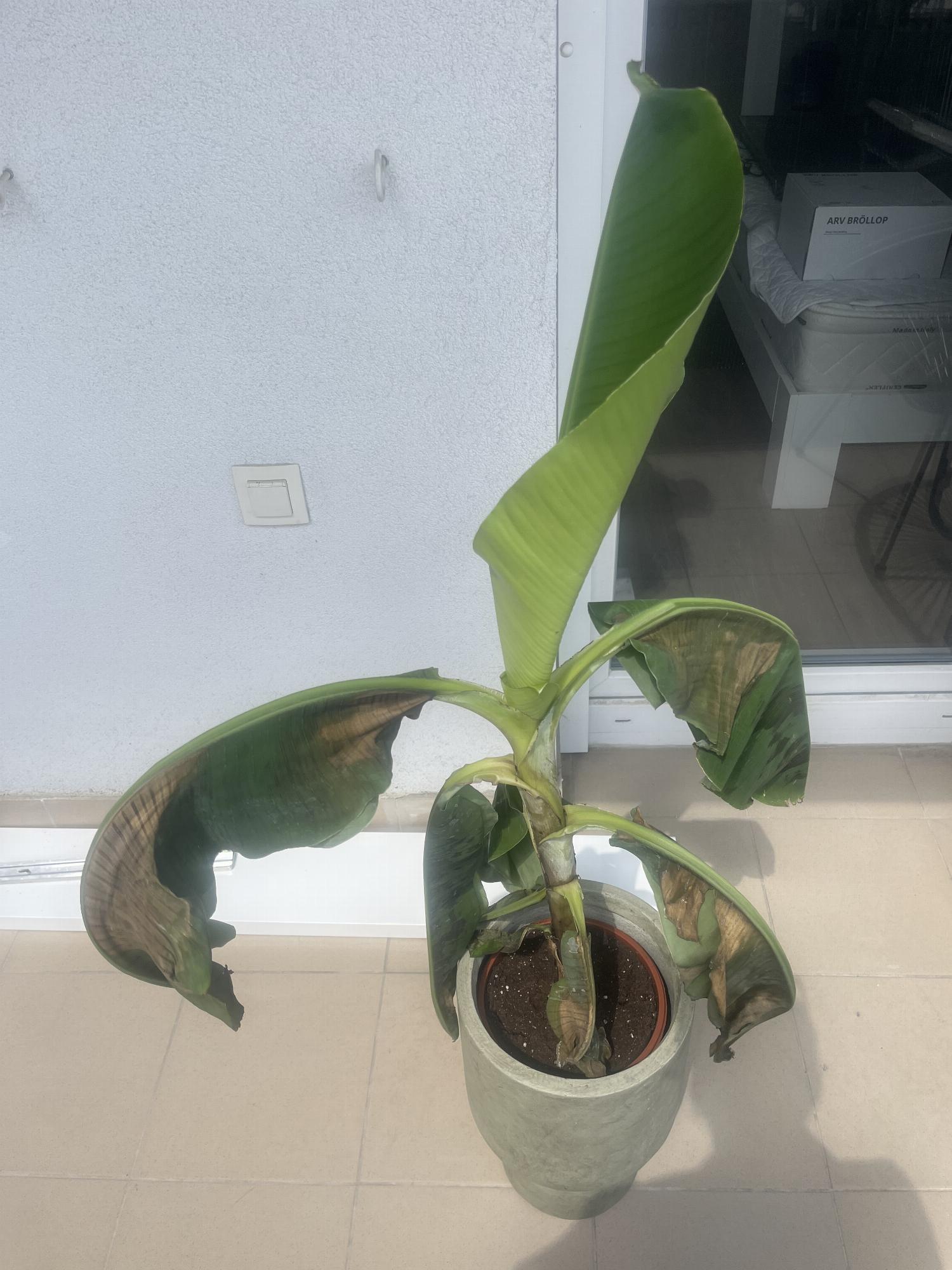 Két napja vásároltuk a banánfát és még aznap átültettük dísznövény és pálmaföldbe és megöntöztük. Az erkélyen volt, ahol kb a nap felében süti a nap, azóta eltelt két nap és így néz ki most. Minden nap szükséges öntözni? Inkább árnyékosabb helyre tegyük? Ön szerinte mi lehet a probléma és mit kell tennünk hogy megmentsük? Köszönöm szépen előre is!