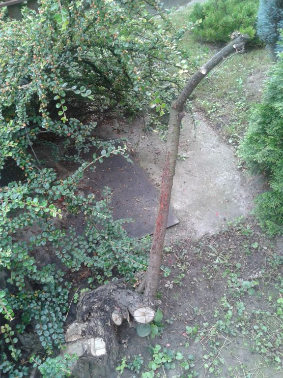 15 éves cseresznyefa 6 ága közül 3 ágon 10-25 cm hosszban felrepedt a kéreg, 10-20 mm nagyságú fehér gombák jelentek meg.