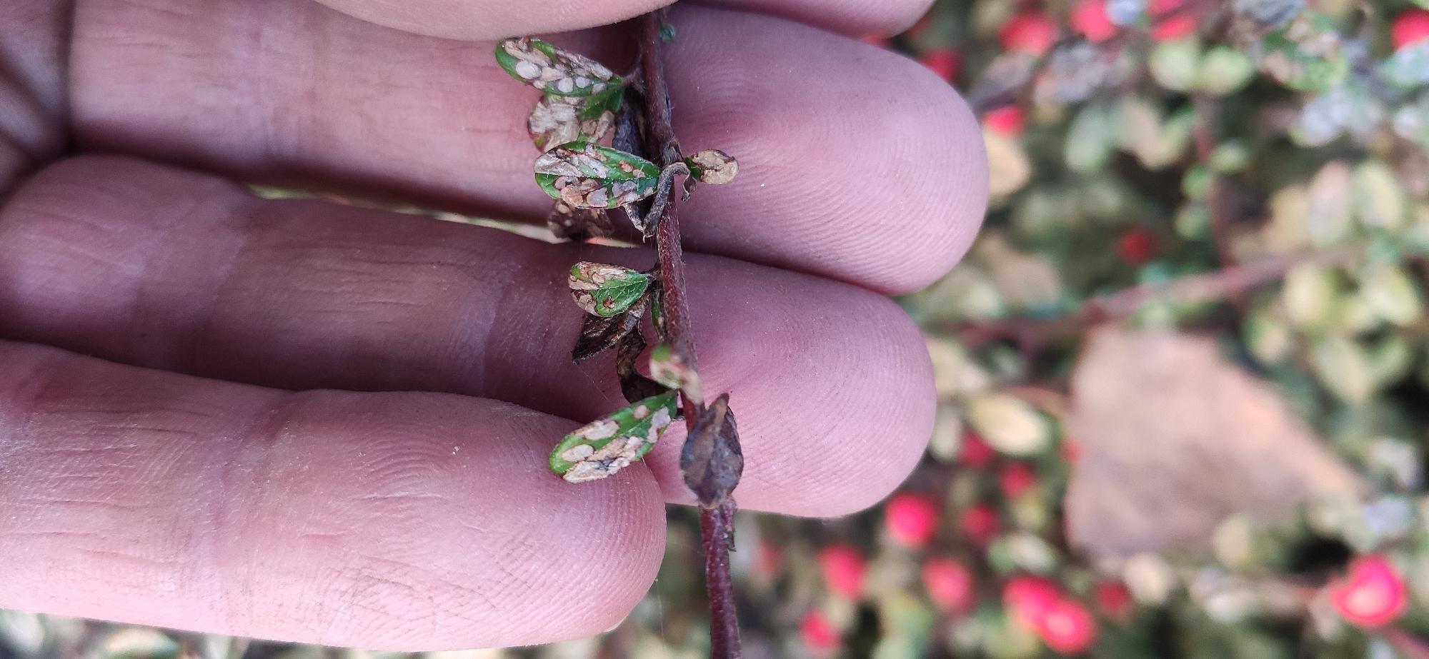 Úgy tűnik, hogy a tűzelhalás (Erwinia) kórokozó baktérium támadta meg a növény. A károsodott részeket el kell távolítani és elégetni, de az a legjobb, ha az egész növényt elégeti. Réztartalmú szerrel kezelje le a megmarad, egészséges példányokat, de ügyeljen arra, hogy ne a legnagyobb melegbe juttassa kia a permetező szert. Jövőre rügyfakadástól pirosbimbós állapotig 2-3 alkalommal kezelje az állomány résztartalmú szerrel. A metszőollót, amivel metszette hipóval fertőtlenítse le, mert ez a betegség az almát is támadja.