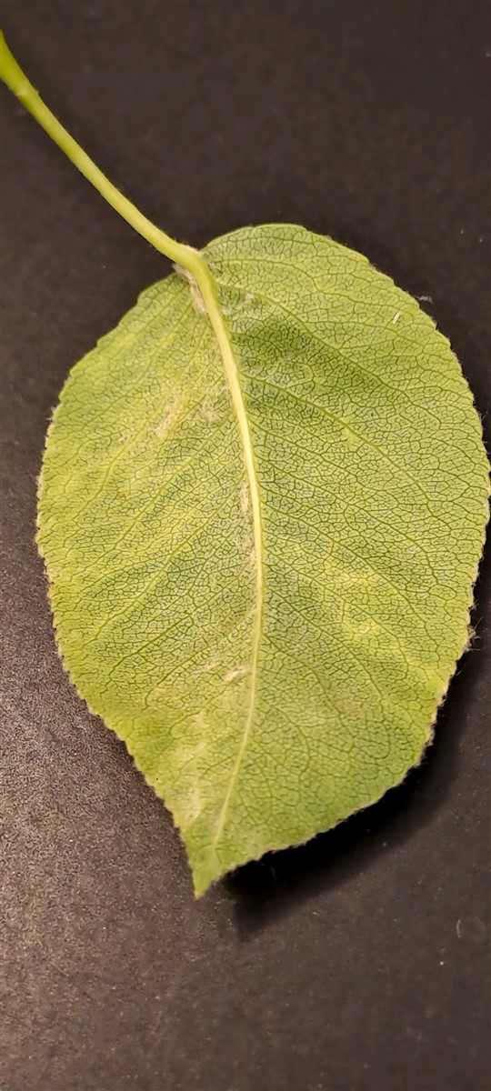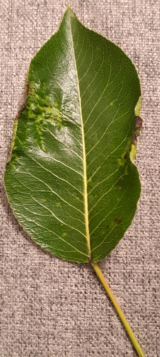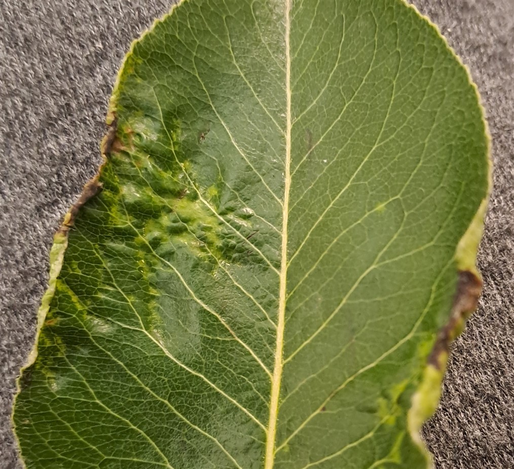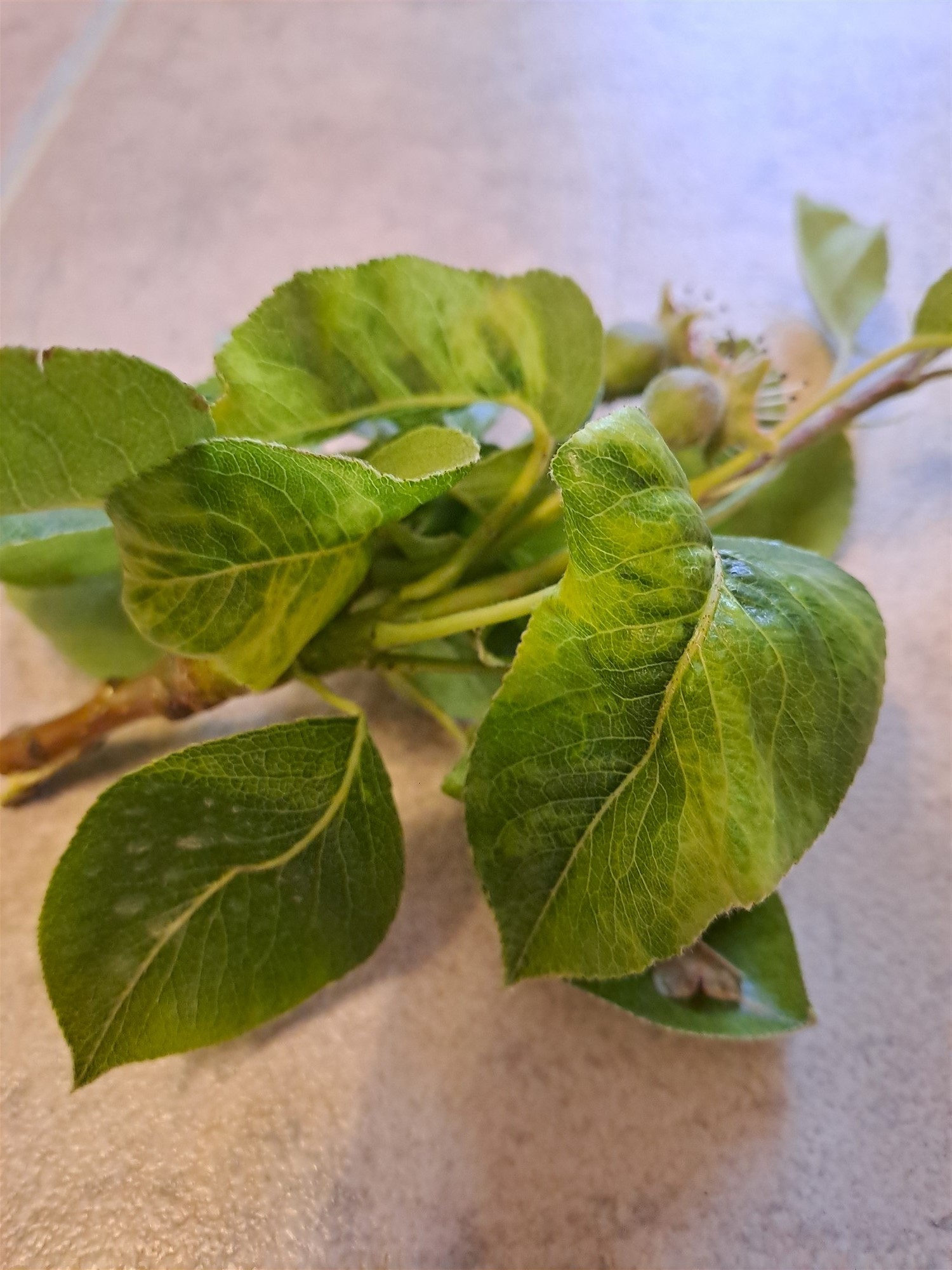 2022 őszén ültetett Conference körtefám lombján a mai napon fekete színű leveleket találtam. Általában 1-2 naponta átnézem az állományt, szóval elég friss lehet a dolog.