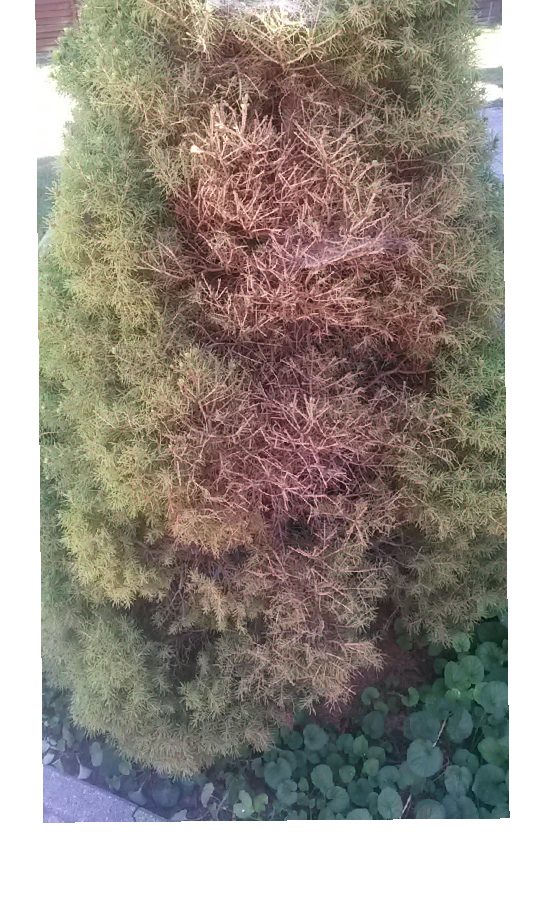 Tisztelt Szakértő! Mi lehet a baja és mit tehetünk ellene, a cukorsüveg fenyő egyuk oldala szinte egyik napról a másikra elbarnult. De a száraz ágak végén új hajtások jönnek. Eddig csak nagy nyomással tiszta vízzel mostuk le, talán kicsit lassúlt a folyamat de nem szűnt meg.