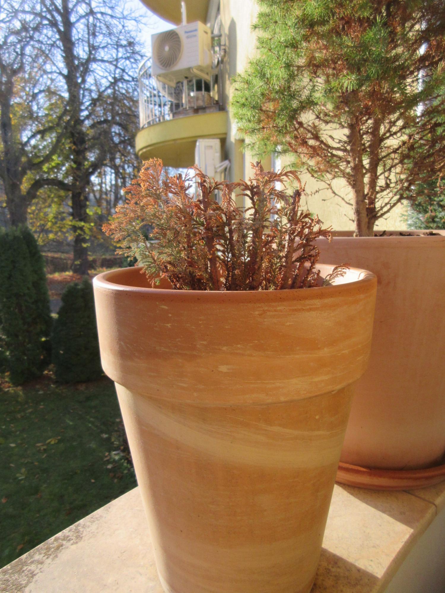 Sajnos nincs saját kertem, csak egy erkély, ahol cserépben tudok növényeket nevelni. Azért is próbálkozom örökzöldekkel, hogy egész évben legyen ott növény, de tudom, hogy a változó klíma nem kimondottan kedvez nekik. A másik gondom a tujákkal van (szintén cserépben), néhány évig nagyon szépen fejlődtek, de idén nyáron -hiába permeteztem vízzel minden nap- nagyon csúnyák lettek. Némelyik teljesen elszáradt, a többinél egyelőre foltokban jelentkezik a barnaság. Gondolom ez is egy fajta gomba, vagy egyéb betegség. Mit javasol, mit tudok tenni velük, hogy megmentsem őket?
