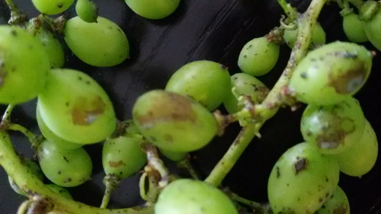 Mostanra mellette lévő Pannónia kincse és az Eszter nevű szőlőn is megjelent a mellékelt képen látható foltosodással.
