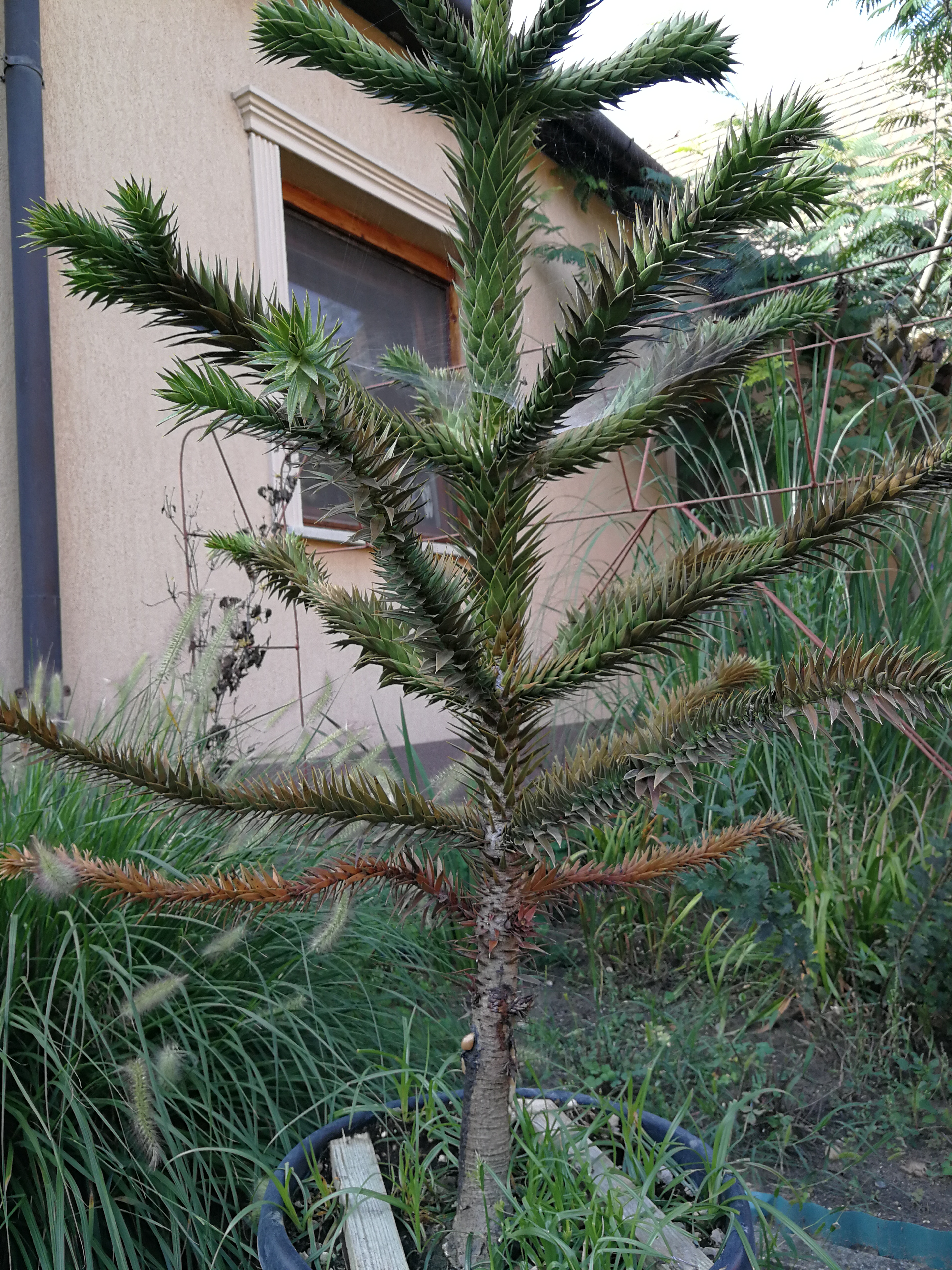 Nemrég kapott kb. 120cm-es Araucaria fenyő alsó ágai elkezdtek barnulni, puhulni a levelei. Mi okozhatja? Egyenlőre még konténerben van, nem ültettük ki.