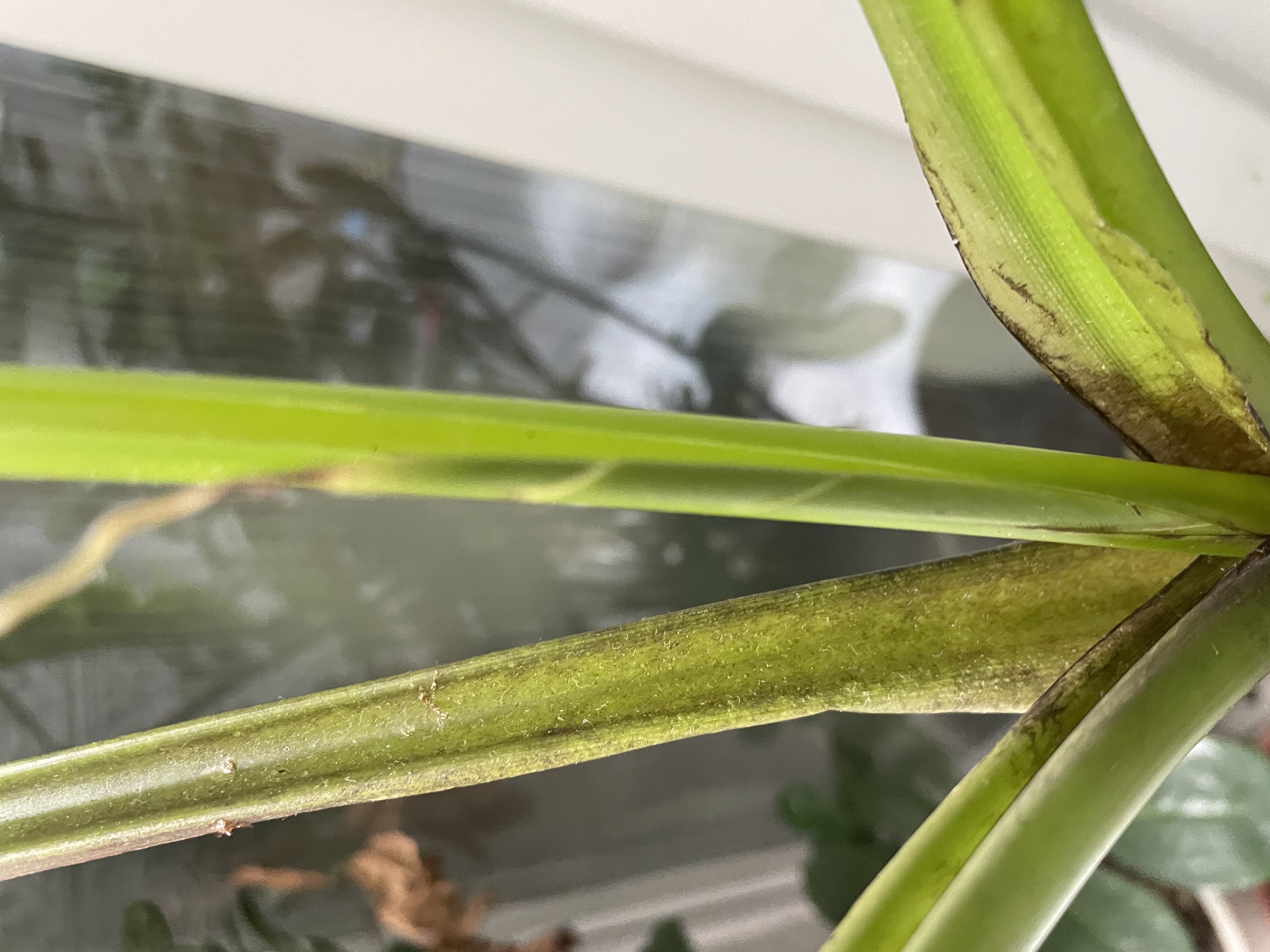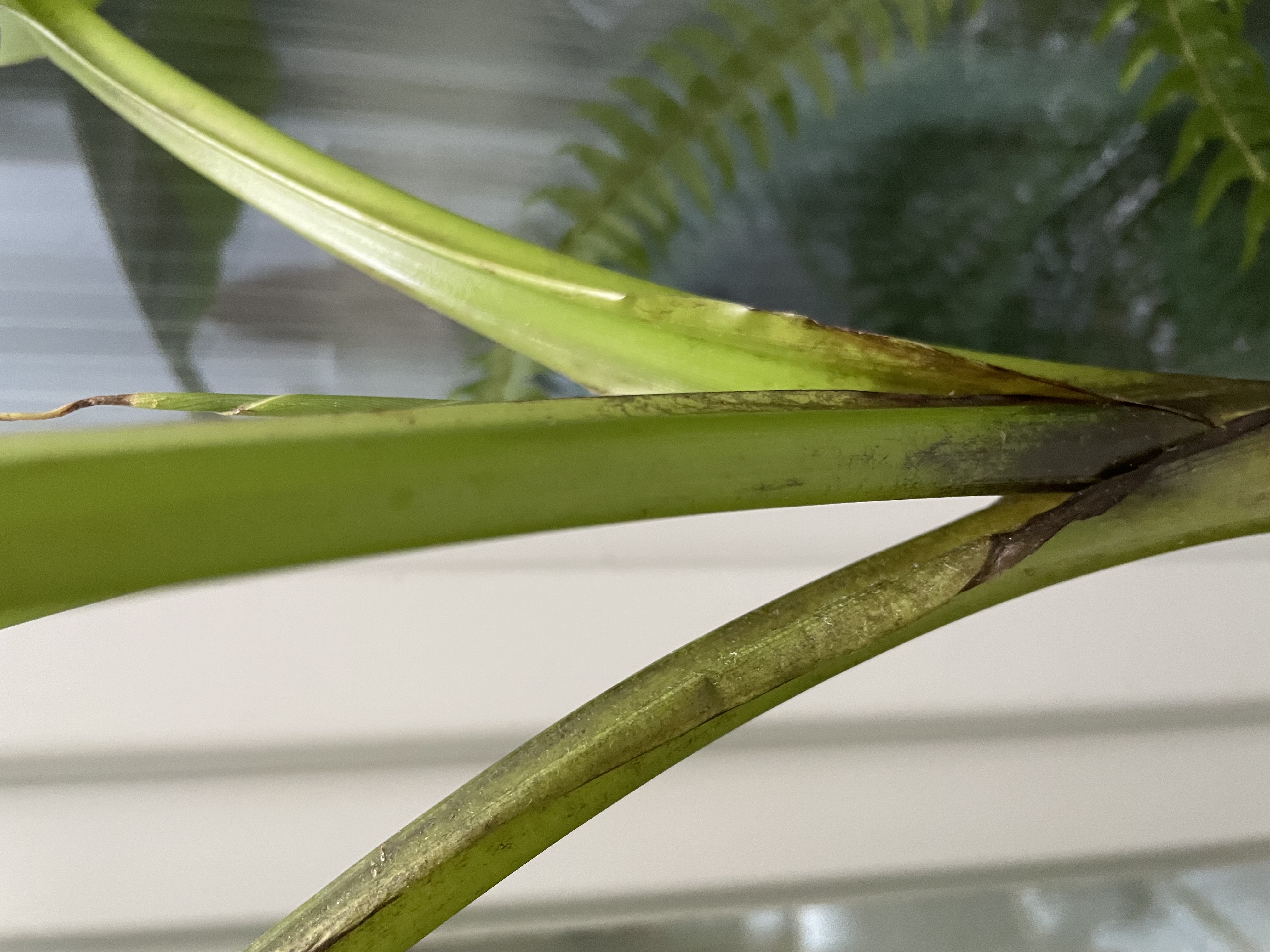 A növény alapvetően tápanyaghiányban vagy szélsőséges környezet (pl. túlöntözés, túl meleg, alacsony levegő-pártartalom) miatti tápanyagfelvételi zavarban szenved. Téli fényszegény időszakban elegendő számára a 16-18 C-fok. Mediterrán növényenke javasolt tápoldatot javslunk az előírás szerinti dózis felével. Ne álljon a tálkában víz, de a kötege legyen nyirkos, de ne tocsogósan nedves.