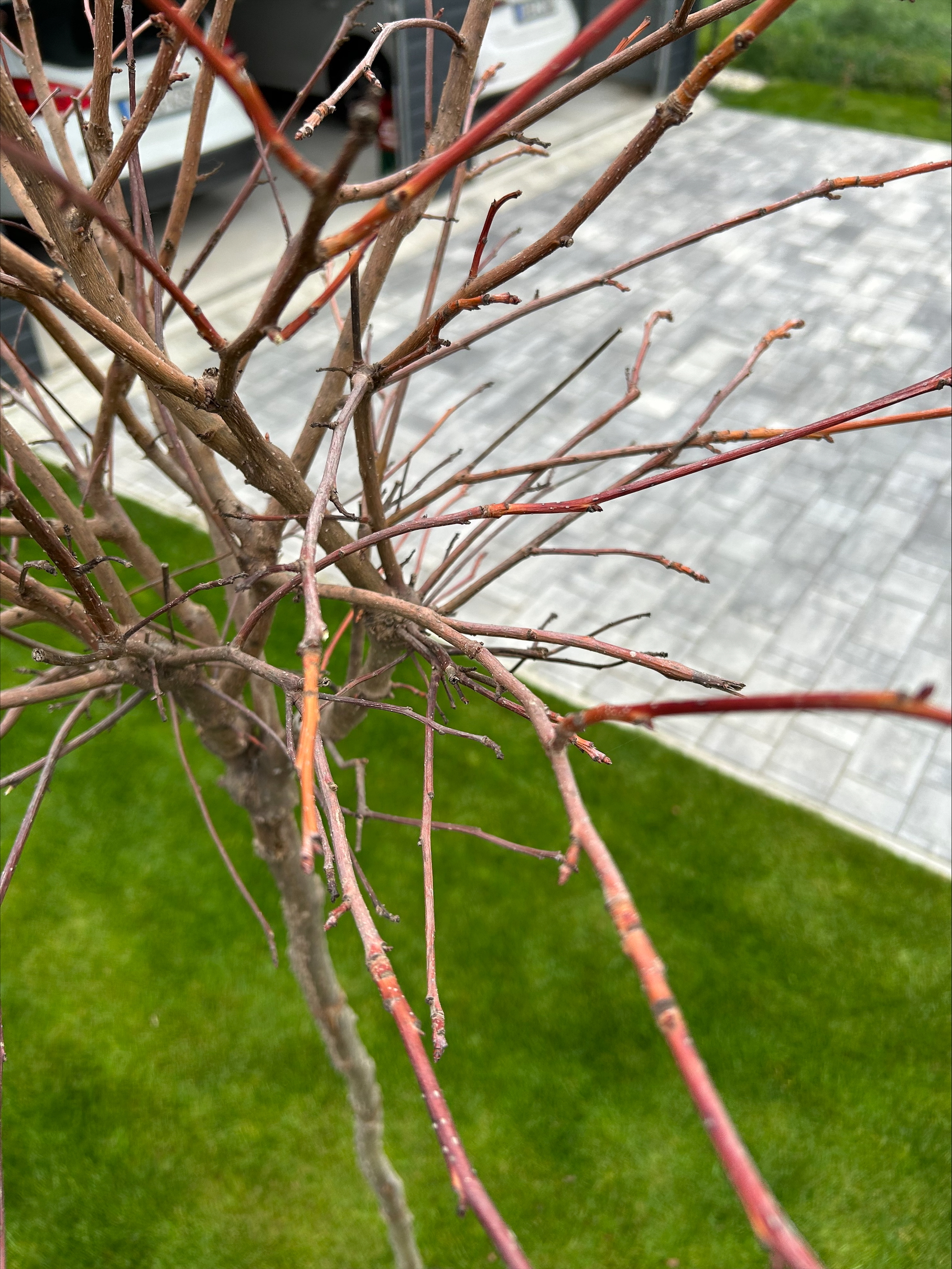 Tavaly ültetett konténeres gömb ámbrafánk sajnos a mai napig sem kezdett el rügyezni. Azt vettük észre rajta, hogy az ágak mintha száradnának. Ültetés után semmi probléma nem volt vele. Ősszel szépen elszineződtek a levelei ahogy kell és eldobta őket. Önök szerint van még esély vagy vége van? Mi lehetett a probléma? Csatoltam róla képeket.