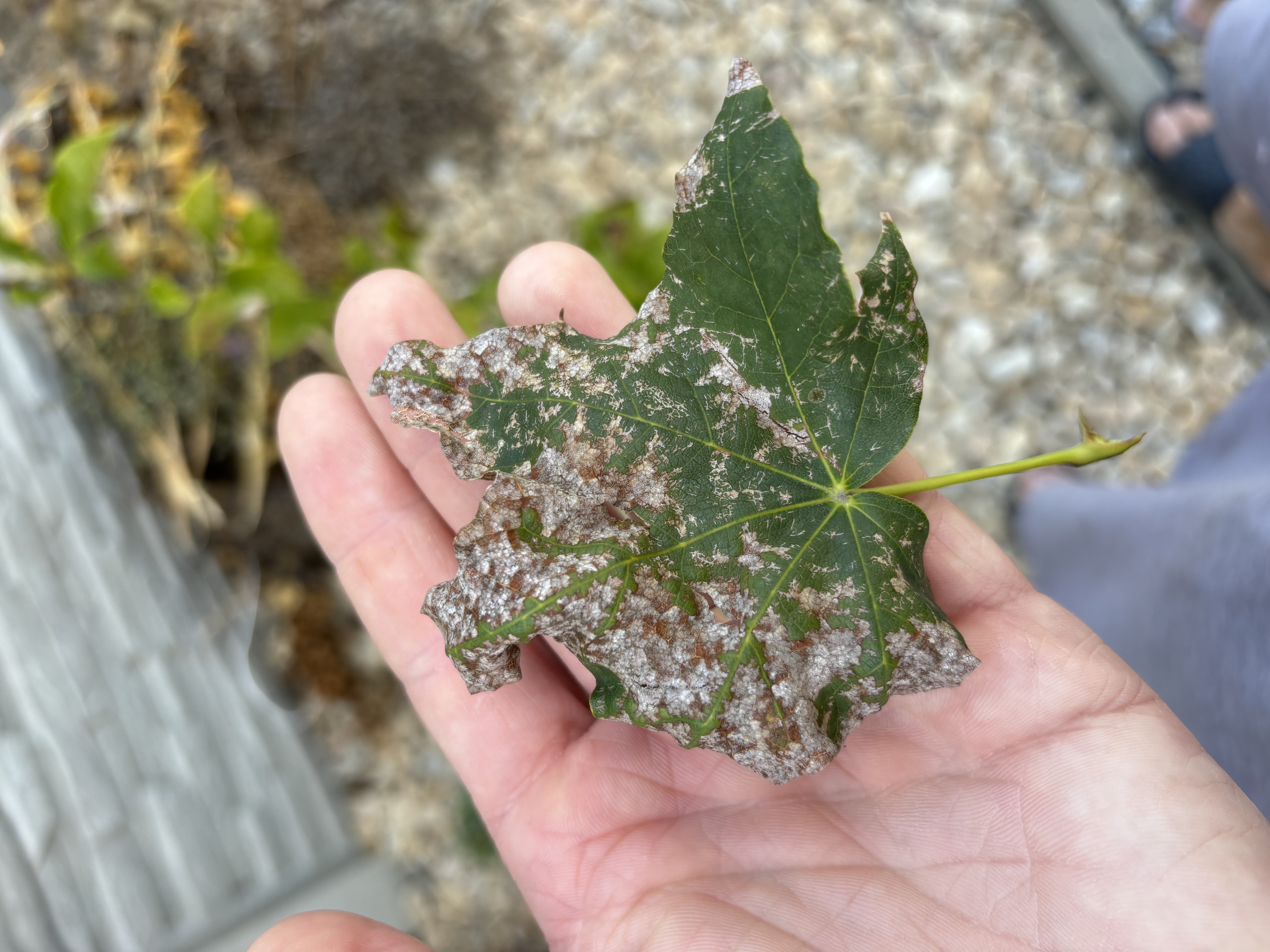 Üdvözlöm! Erősen lisztharmatos volt a növény. Kén vagy Folicur solo kellett volna! A tápanyagot a csurgóra kell adni, és sok víz kell amíg leér a gyökerekhez.