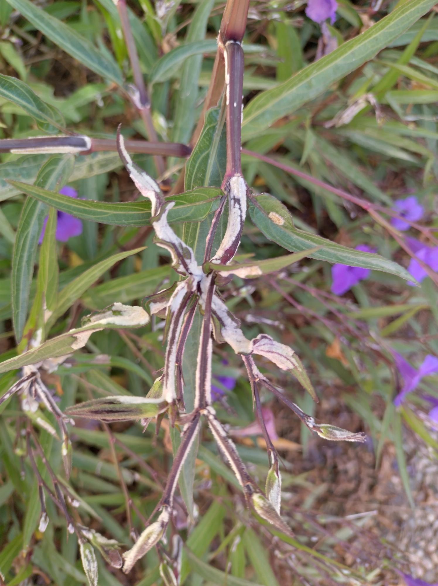 Köszönöm a korábbi válaszokat. Most a mexikói petúnia betegségével kapcsolatban van egy kérdésem. A képen látható fehér, vattaszerű fertőzés egyre jobban terjed. Jellemzően az új hatásokon jelenik meg, szinte azonnal, és hiába távolítom el a fertőzött részeket, egyre csak jönnek. Olykor az ágon is van. Ha a körmömmel nagy nehezen lekaparom, alatta egy ép levél van, ami enyhén sötétebb, talán kicsit barnás színű. Mi lehet a baja a növénynek, és milyen kezelés segíthet?