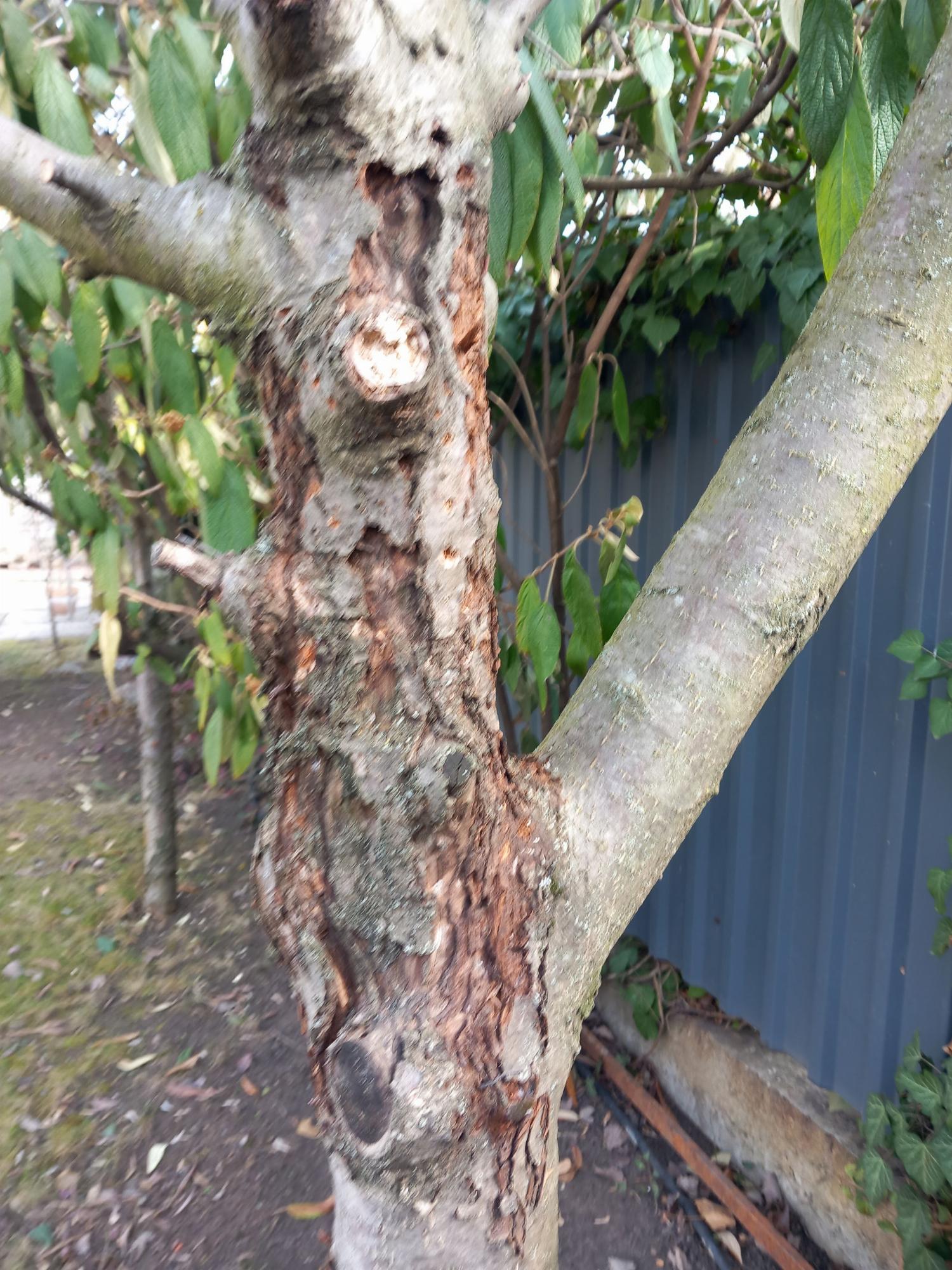 A fiam egy hete vásárot almafát, törzsén ilyen elváltozások vannak. Nem tudjuk mi lehet, esetleg mit lehetne vele tenni?