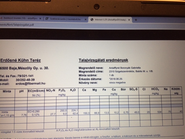 Kedves Edina! Az előbbi levelemhez csatolom külön a talajvizsgálat eredményét. Köszönettel: Antalffyné B Gabriella