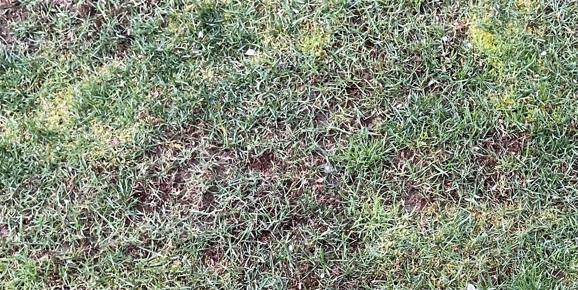 Sajnos elég erős a mohásodás a gyep északi felén, évente kb. 2 alkalommal szoktuk vasgáliccal megöntözni emiatt és pár nap múlva gereblyézni.
