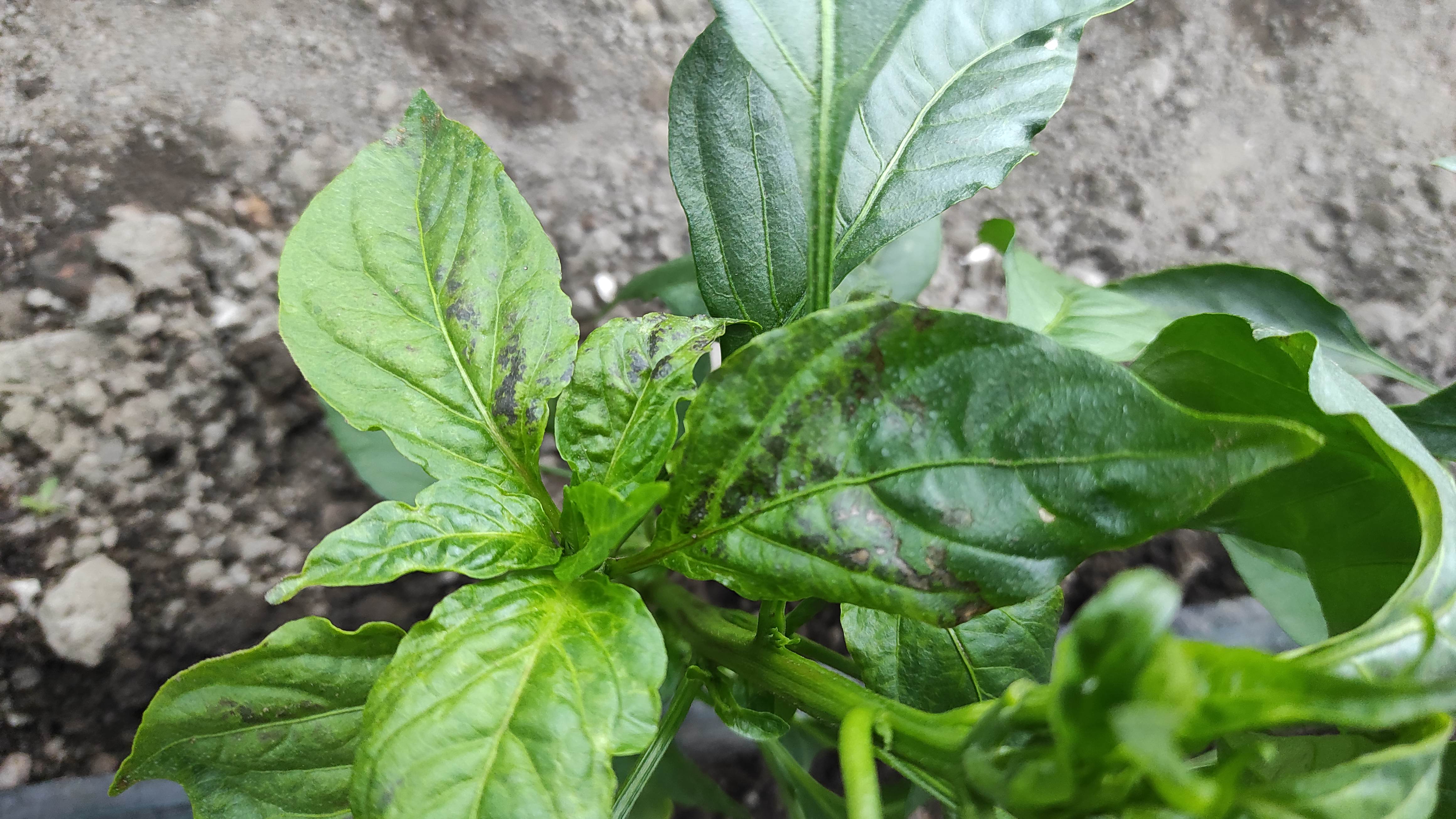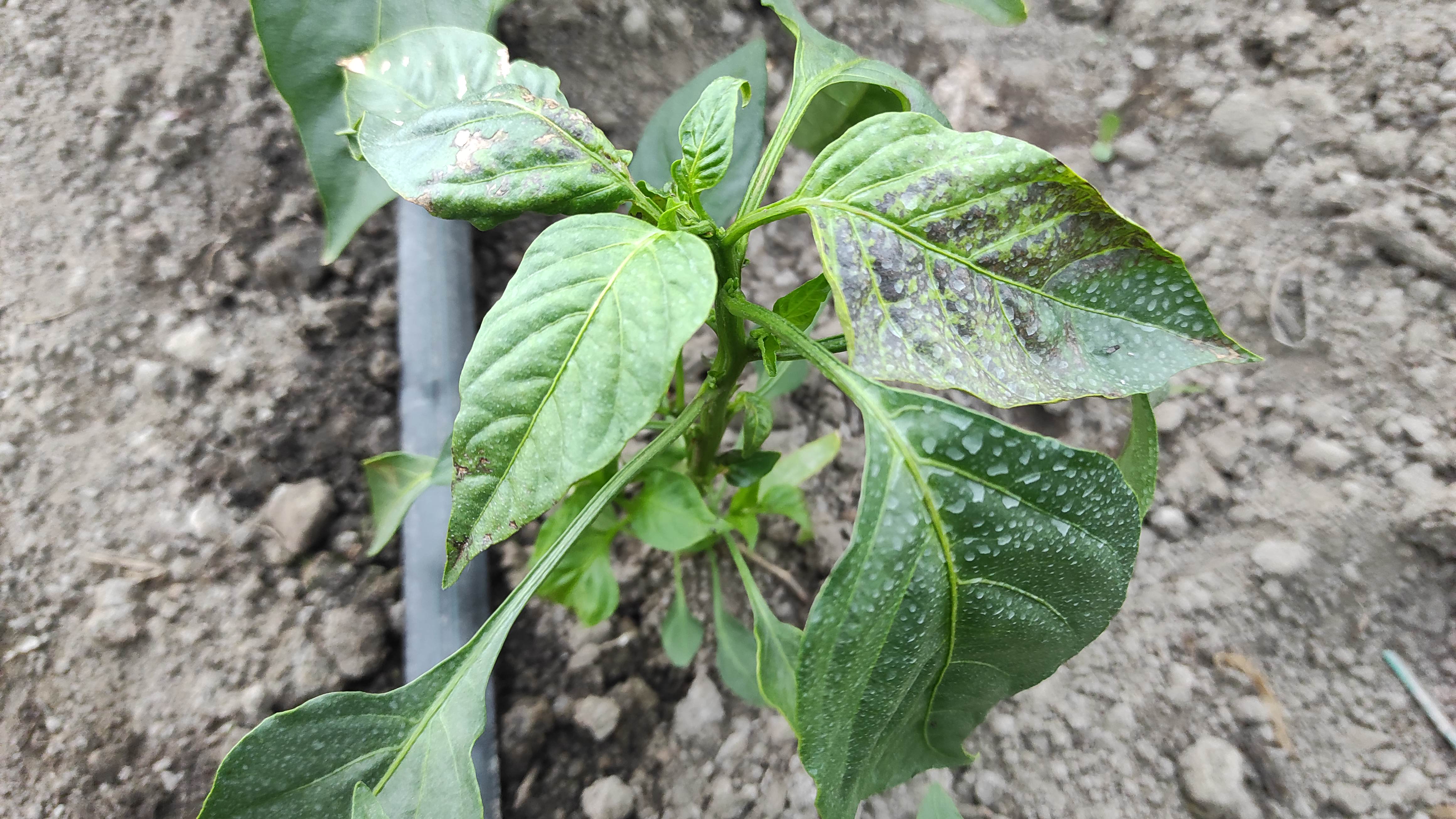 A napégéses probléma meg oldódott, be lett árnyékolva a fólia. Kapott stresszoldásnak biostimulátort, szépen kezdenek is magukhoz jönni a paprikák. Most új problémát észlelek, pár tövön fekete foltok jelentek meg a leveleken. Mi lehet ez?